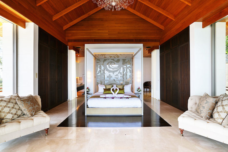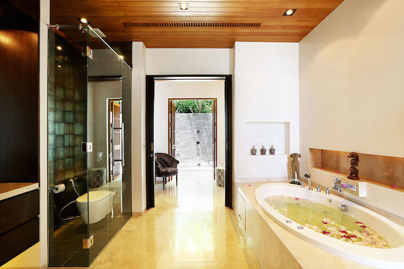 One other room also features its own private balcony. Every room is equipped with a huge, brilliantly comfortable mattress, except one bedroom which is configured with two smaller beds. Every bedroom features its own private bathroom. In total, the villa has five bedrooms including the master suite.