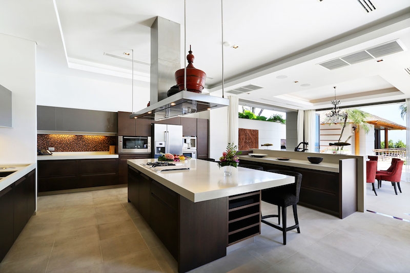 The villa is designed in three tiers which make up the different levels of the building: the lower two levels form a U-shape with an elegant lily pond at their focal point, while the top level is the master suite, the home of incredible views and immense luxury. Many rooms are equipped with floor-to-ceiling glass walls, offering an inviting view whether you’re inside or out. In terms of architectural perspective, Villa Torcello can be looked at as a brilliant fusion of traditional Asian tropes (from a variety of cultures,) combined with the efficiency, minimalism and brilliance of modern practices. From the outside, Torcello is a gorgeous sight with its huge cathedral-esque timber roofing rising proud and stately above the meticulous landscaping and brilliant structure.