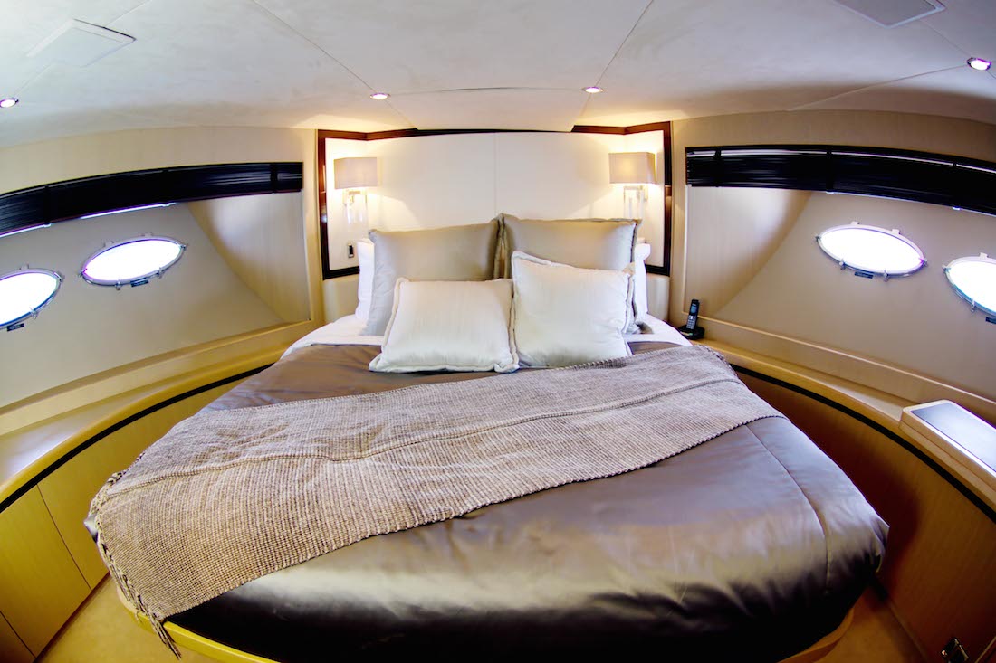 This model from 2010 is a stylish motor yacht. It features a stylish main saloon, large wrap-round windows, Hi-Fi Bose entertainment, television, DVD, ice maker, water maker, showers, fly bridge barbeque, an alfresco table and an iPod docking system. There is plenty of space for socializing in this boat.