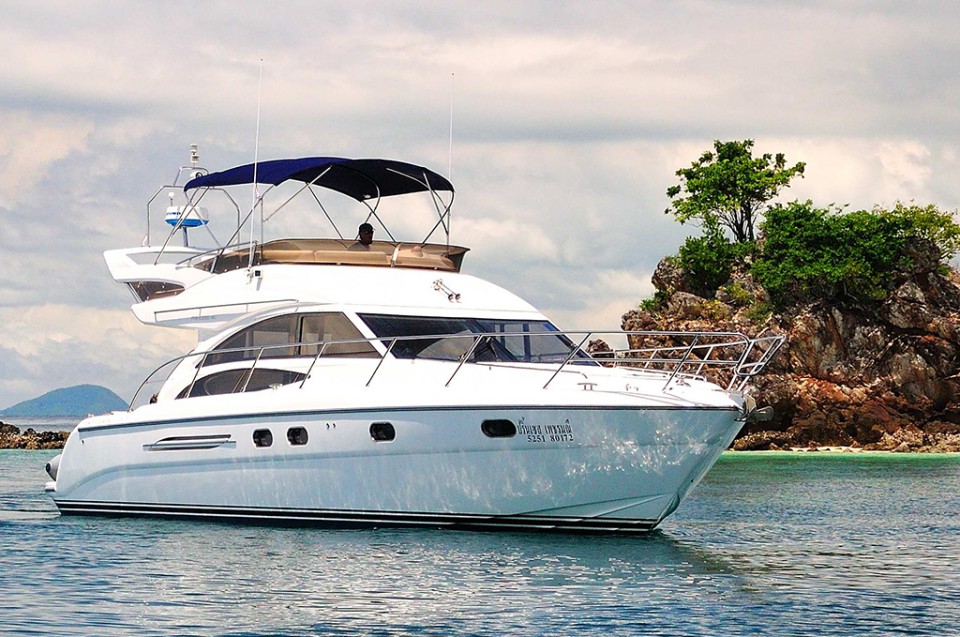 For a boat of this size, the volume is the largest that you can find. The space is used optimally, with a stylish and practical design. No matter if you use this boat for a day ride or for a night trip, it provides all the options that you need: air conditioning, leather upholstery, a large cockpit, a triple pane sliding saloon door and a spacious fly bridge. The design is great for relaxation, socialization and exploring the islands around Phuket.