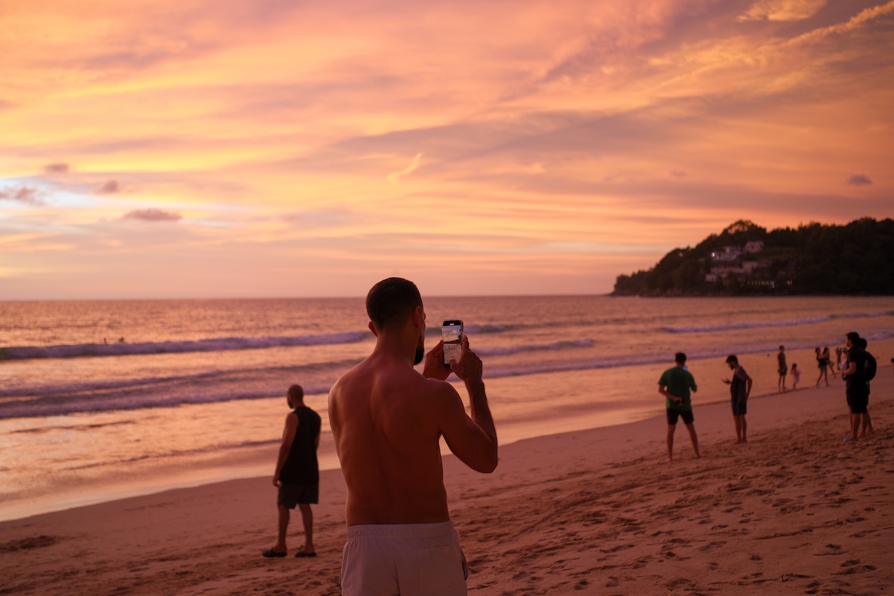 Image: Sunsets and surfboards on Kamala Beach.