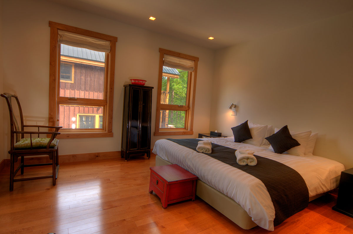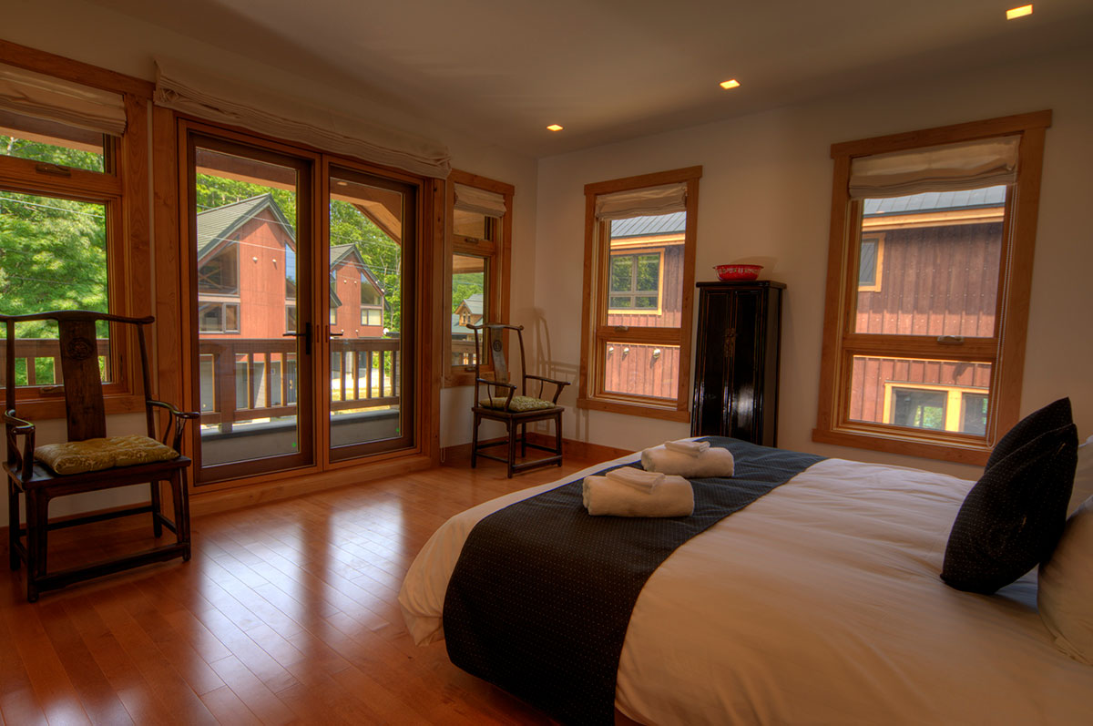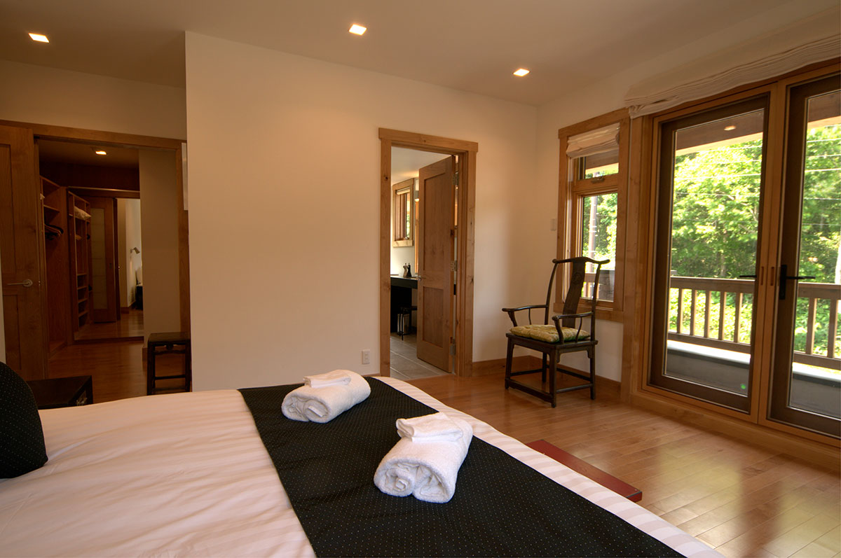 Master Bedroom — King size bed or 2 single beds; Forest view; Balcony; Walk-in closet; Work desk; Air conditioning & central heating; Ensuite bathroom with bathtub, shower, vanity, and Japanese toilet; Toiletries; Hairdryer; Slippers
