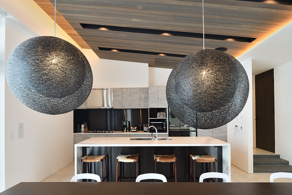 A modern, minimalist chalet, Jun is located in the quiet lower end of Hirafu Village, a short walk from all the action of Japan’s Niseko ski resort destination. The six ensuite bedrooms include two master bedrooms, three guest bedrooms, and a kids’ room with four bunk beds. Standout features are the luxuriously spacious open-plan living and dining room with floor-to-ceiling windows looking out at views of Mount Yotei, the slopes, and a stunning forest landscape.
