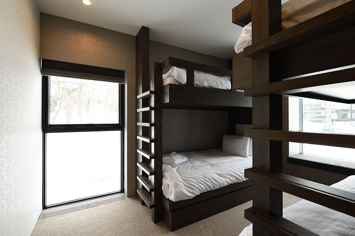 Product Description: A modern, minimalist chalet, Jun is located in the quiet lower end of Hirafu Village, a short walk from all the action of Japan’s Niseko ski resort destination. The six ensuite bedrooms include two master bedrooms, three guest bedrooms, and a kids’ room with four bunk beds. Standout features are the luxuriously spacious open-plan living and dining room with floor-to-ceiling windows looking out at views of Mount Yotei, the slopes, and a stunning forest landscape.