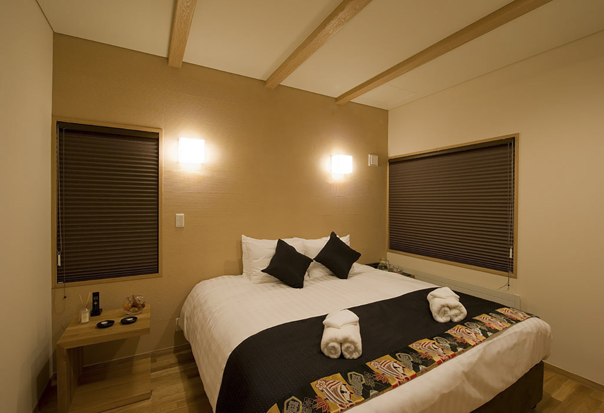 Positioned in the lower village area of Hirafu, Miyabi boasts dual entrances, providing access through the garage/dry room or the main entry. Upon arrival, guests are welcomed into the genkan (entry room), fully heated with underfloor heating, while a traditional-style rock garden and water feature add an element of grandeur to the entrance.