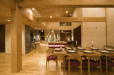 - Chalet Features: Fully Equiped Kitchen , Game Room , Gas fireplace , Hinoki bathtubs , Laundry facilities , Living and dining area , Mount Yotei View , Parking Garage