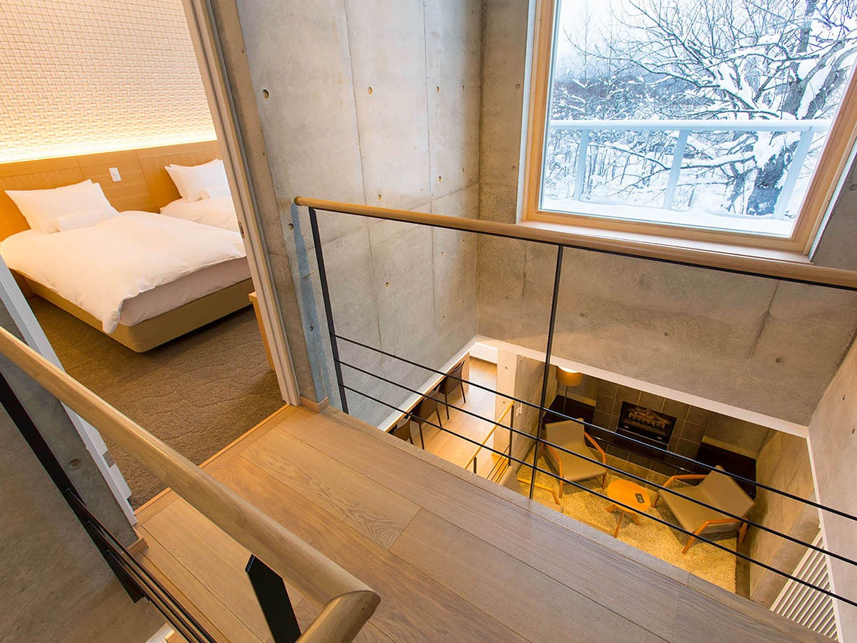 The kitchen and living areas are thoughtfully designed to accommodate a group of ten, allowing for delightful gatherings and shared moments. The chalet’s innovative split-level design and floor-to-ceiling windows invite the outside beauty in, providing a sense of personal space and tranquility. Against the breathtaking backdrop of Mount Yotei, guests can immerse themselves in a Zen-like atmosphere that rejuvenates the soul.
