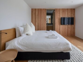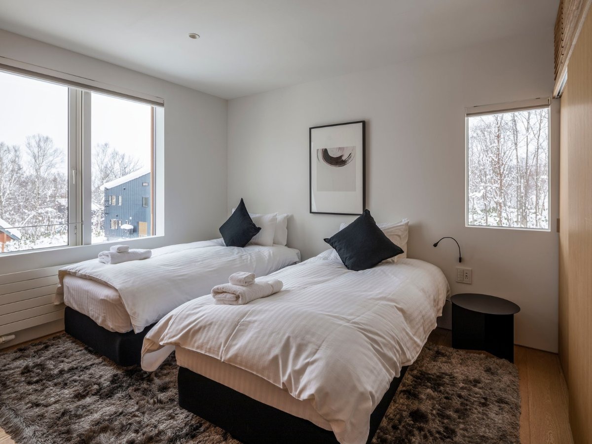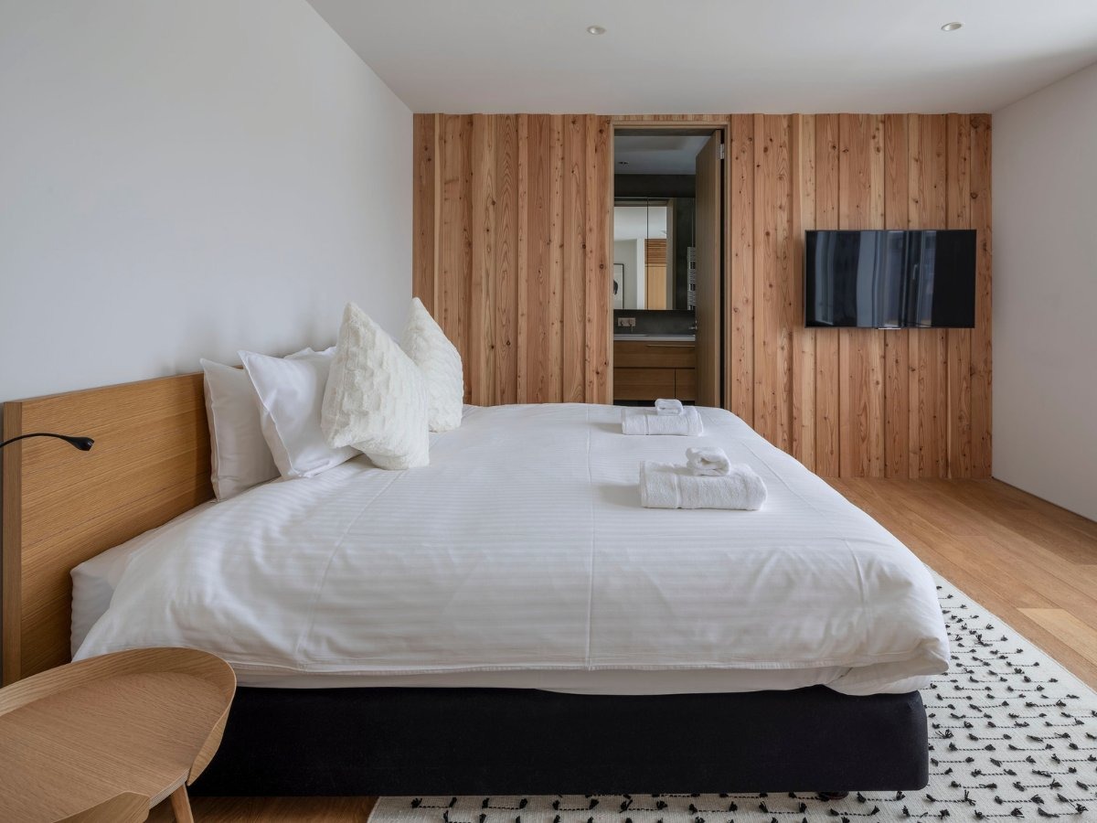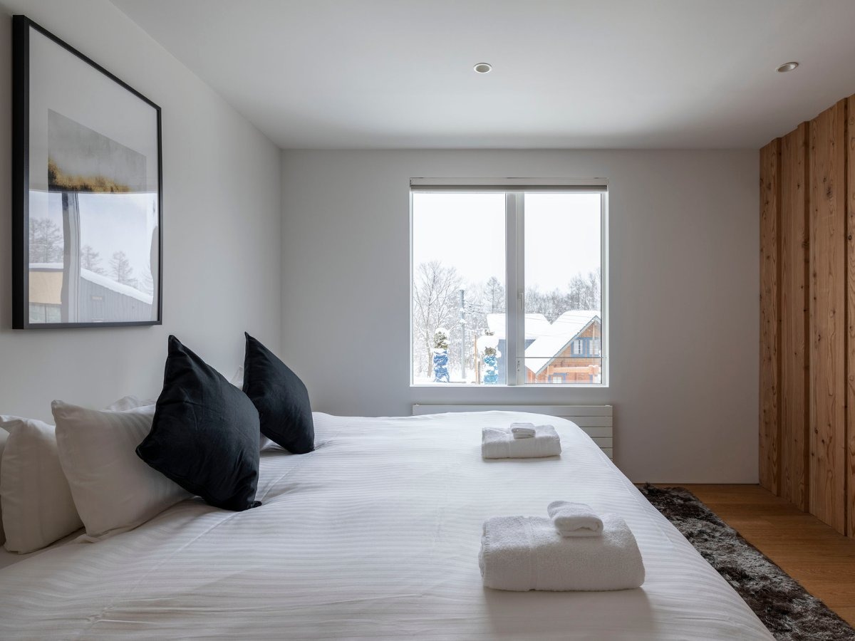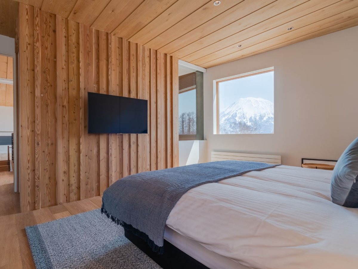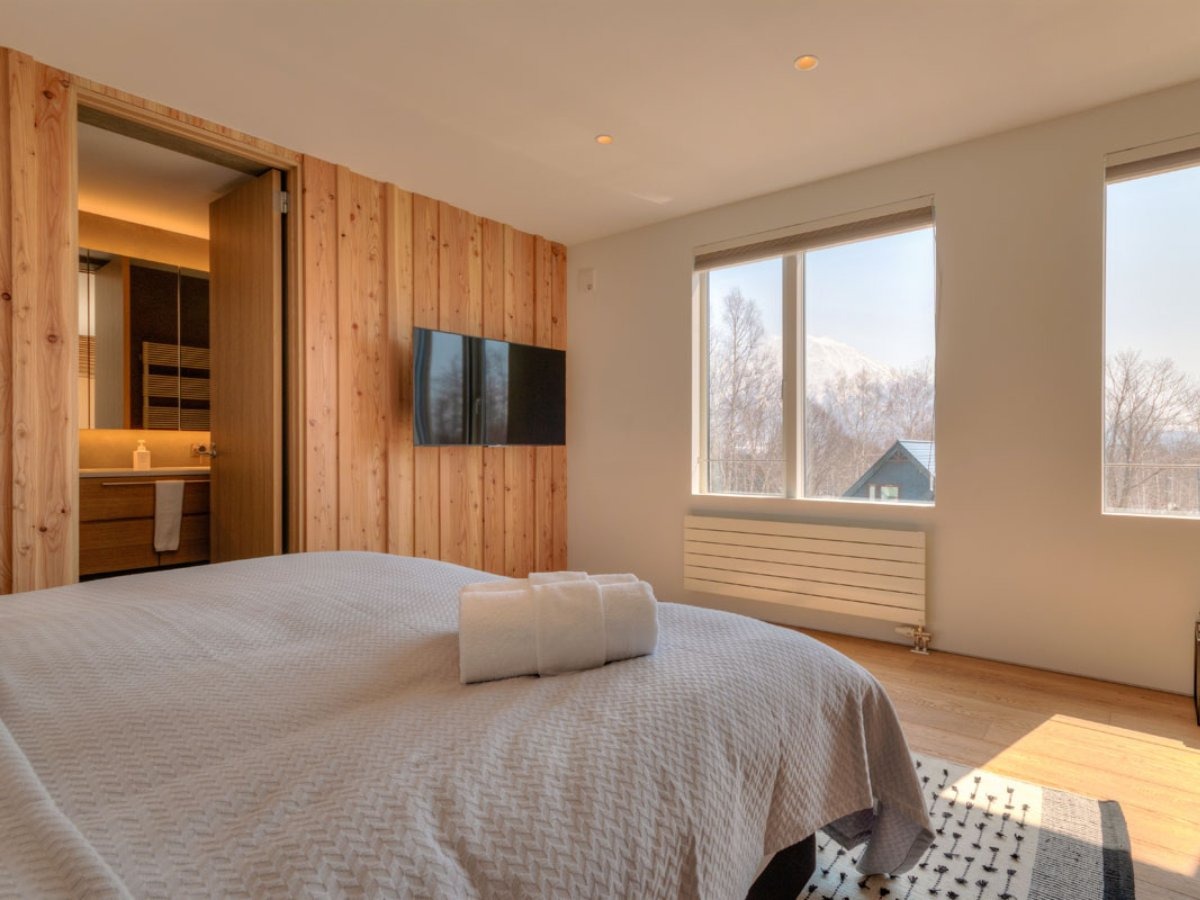 - Master Bedroom A (28 sqm) — King size bed; Mount Yotei view; 2 side tables; Closet; Ensuite with shower, double vanities, toilet