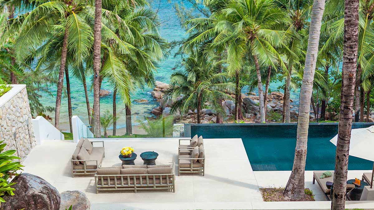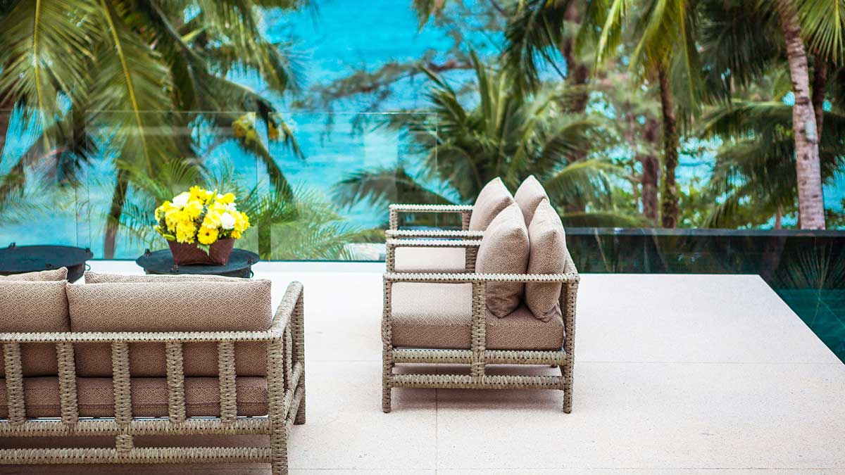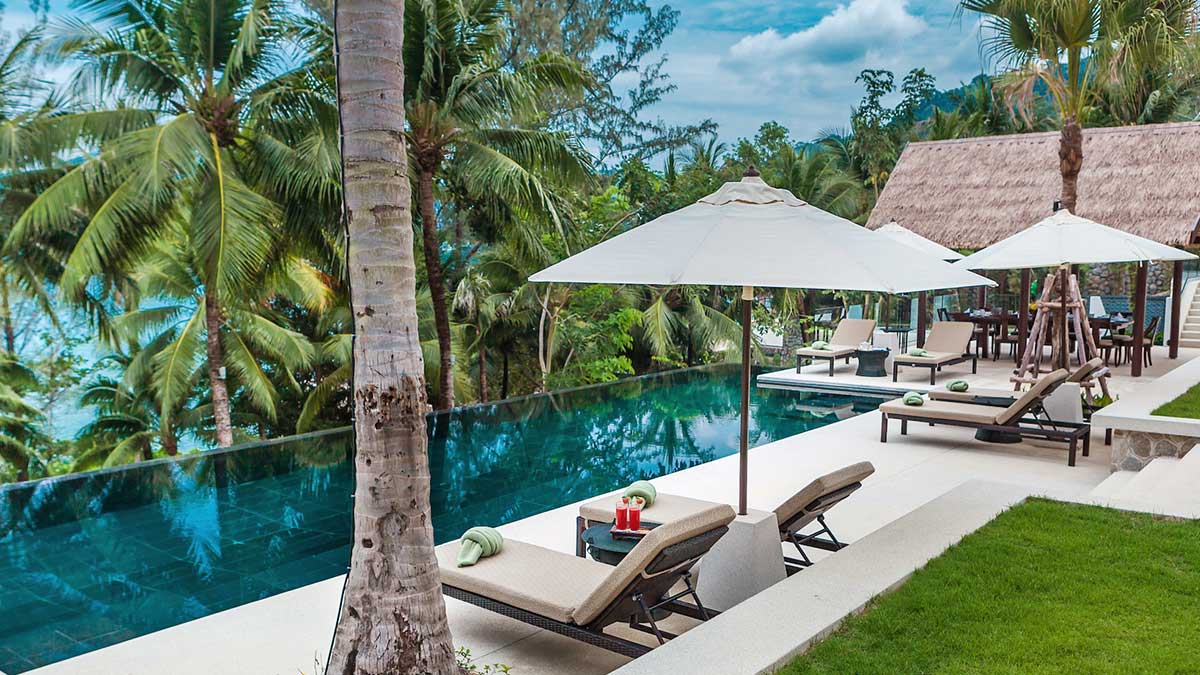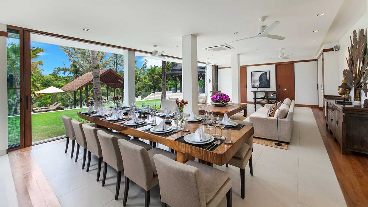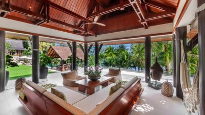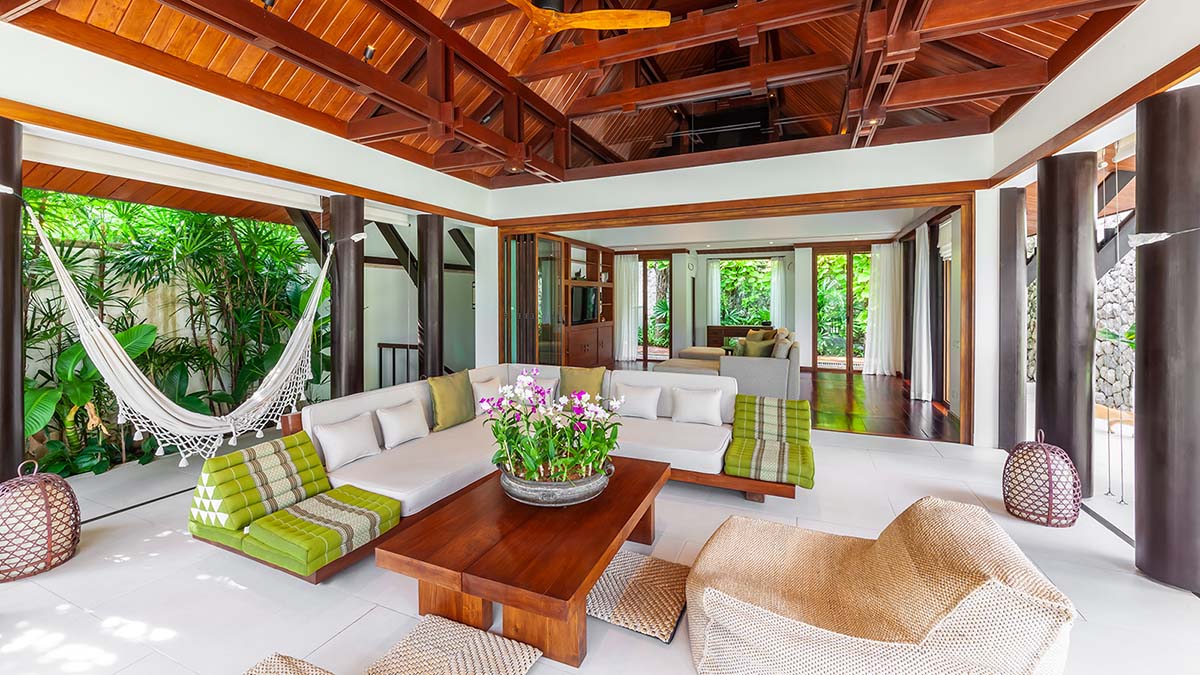 The villa’s highlight is definitely its beautiful zero-edge infinity pool. Facing the Andaman Sea and embraced by palm trees and other tropical trees, swimming at the pool will make you feel like you’re smack in the middle of nature. Around the pool are plenty of sun loungers, a comfortable outdoor sala, as well as an alfresco dining area. Furthermore, manicured, tropical gardens surround the pool area, with a large space for both kids and adults to have fun.