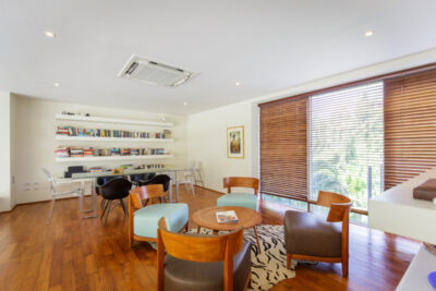 Villa Asan leaves nothing to chance, offering an array of exceptional amenities: a formal dining area, TV room, gym, library, office, guest bathroom, and a lounge outfitted with state-of-the-art sound technology.
