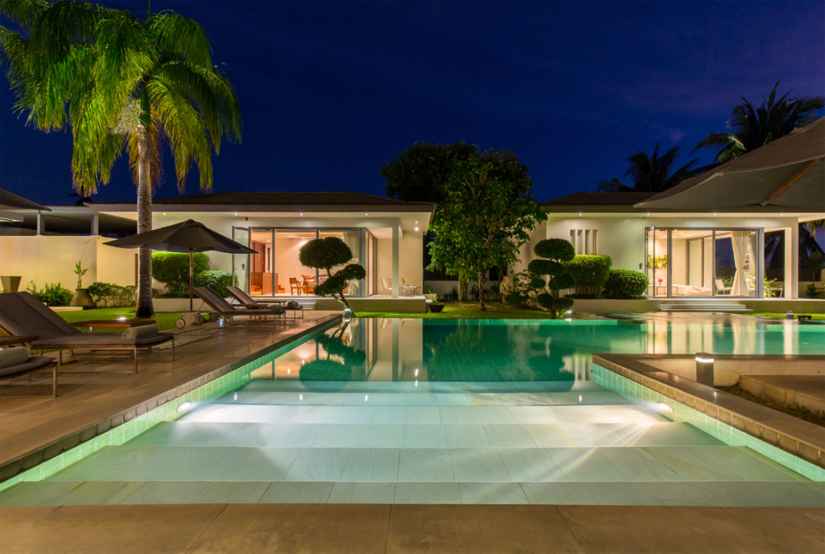 As you pass through the wooden gates of Villa Asan in Taling Ngam, a world of refined elegance unfolds before you. Contemporary architecture blends seamlessly with subtle Asian influences, creating a harmonious balance of sophistication and warmth.