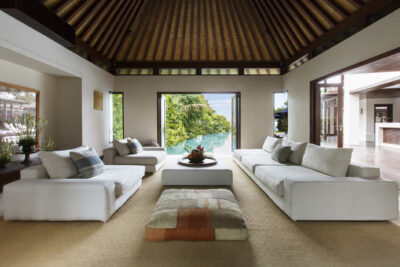 Each bedroom is designed as its own private pavilion, complete with a plunge pool, garden terrace, and outdoor seating. It’s a layout that gives every guest space to retreat and unwind, while still feeling connected to the villa as a whole. Mornings often begin with ocean views and soft breezes, while afternoons drift between shaded terraces and sun-filled decks.