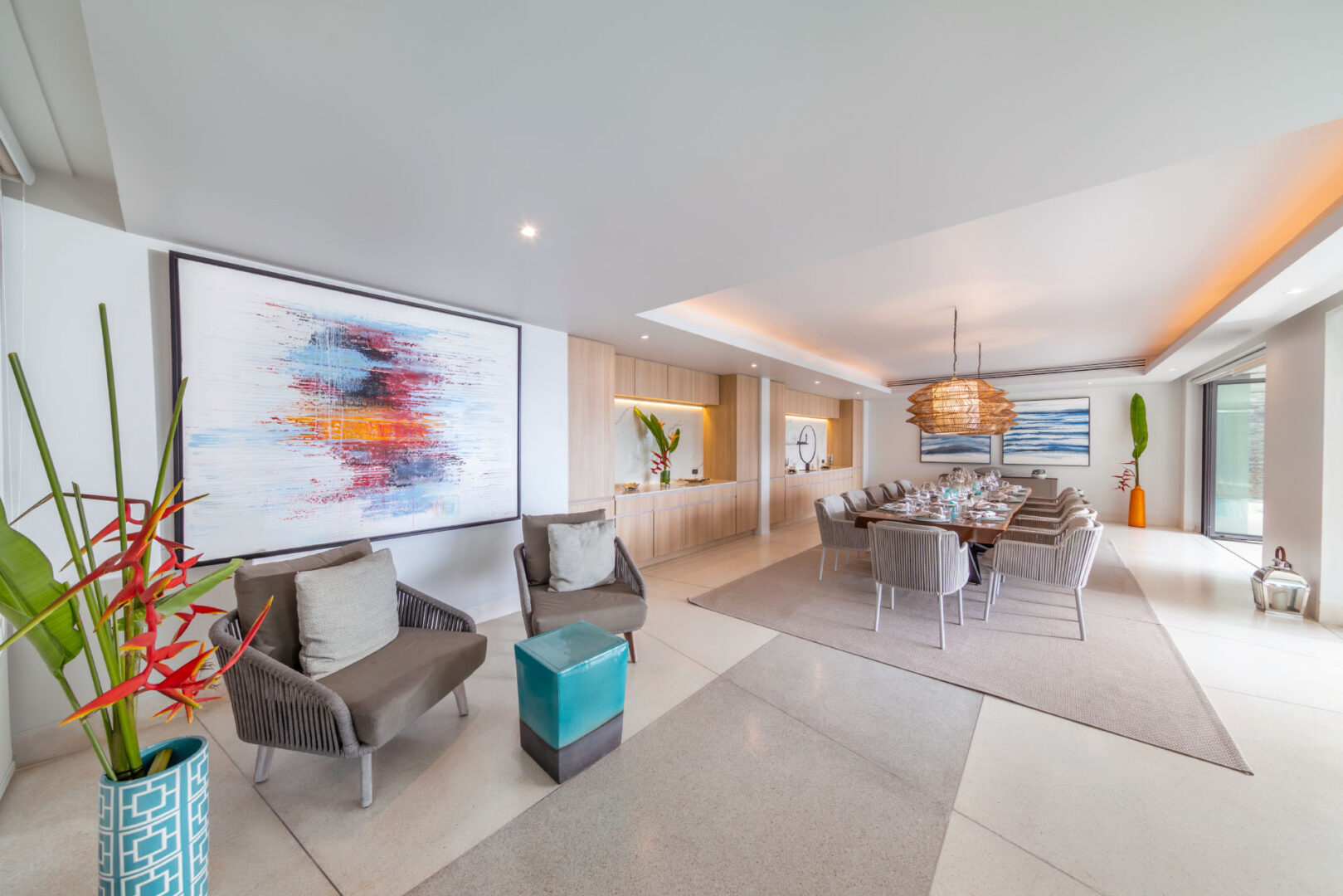 Six well-trained, professional staff are present in the villa, including a villa manager, housekeepers, and a private chef, ready to assist with any requests. They can help guests set their itineraries if they plan to have a day out and explore the island, completing the immersive experience of an ultimate luxury vacation.