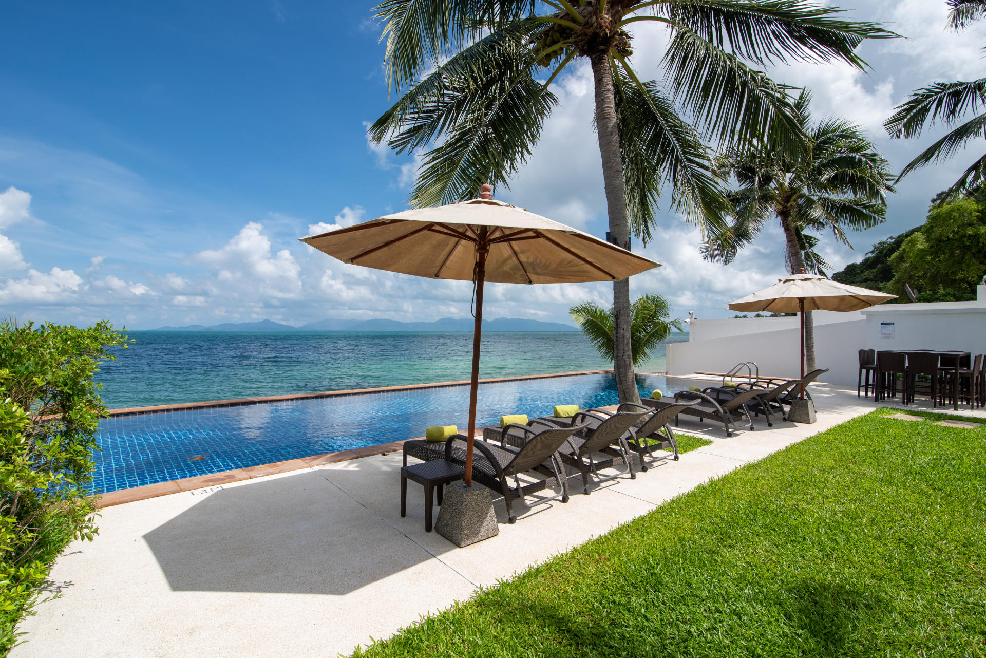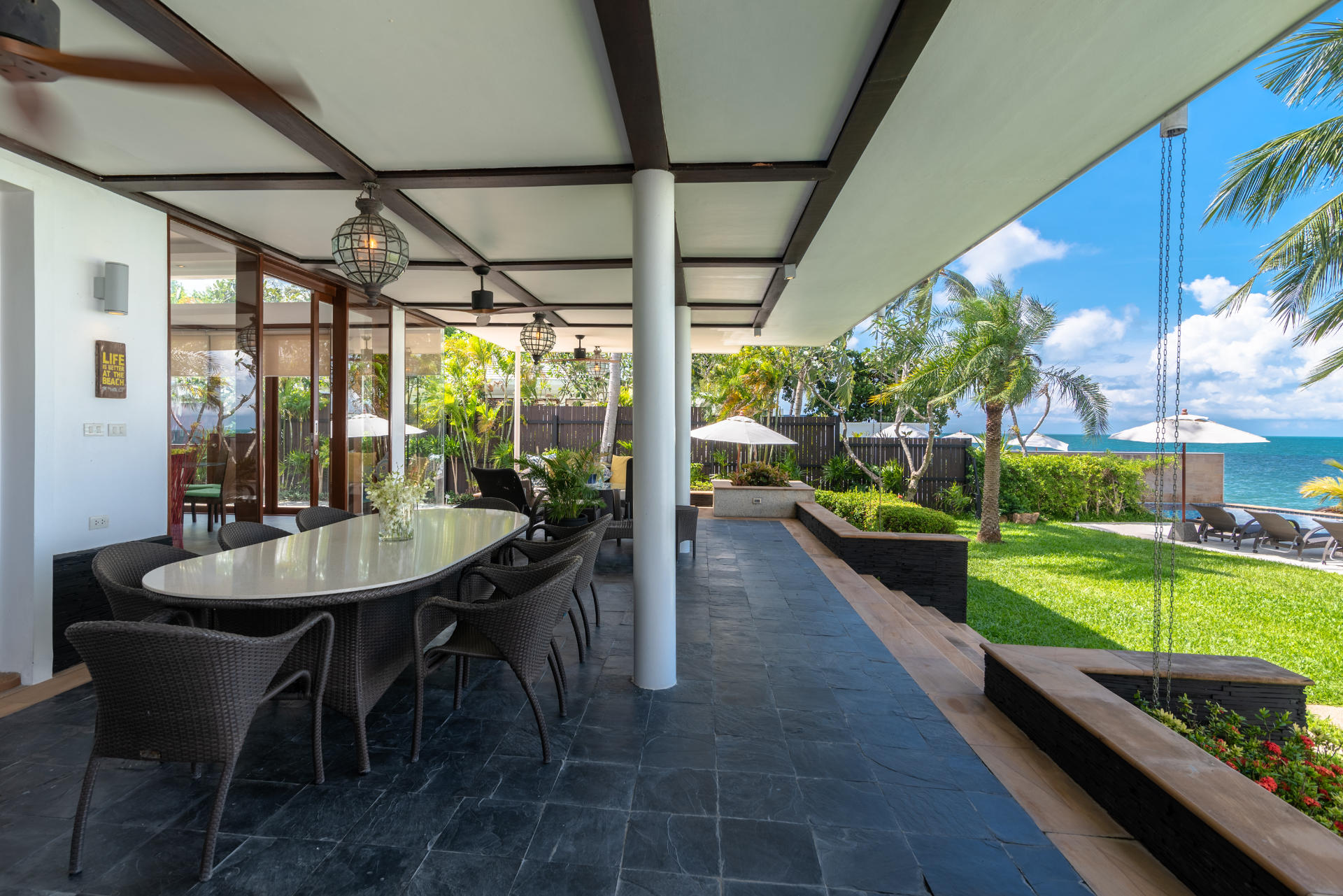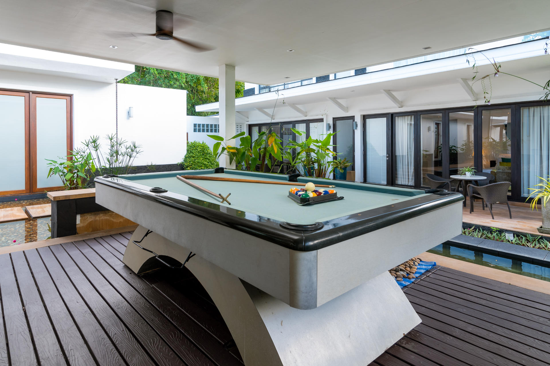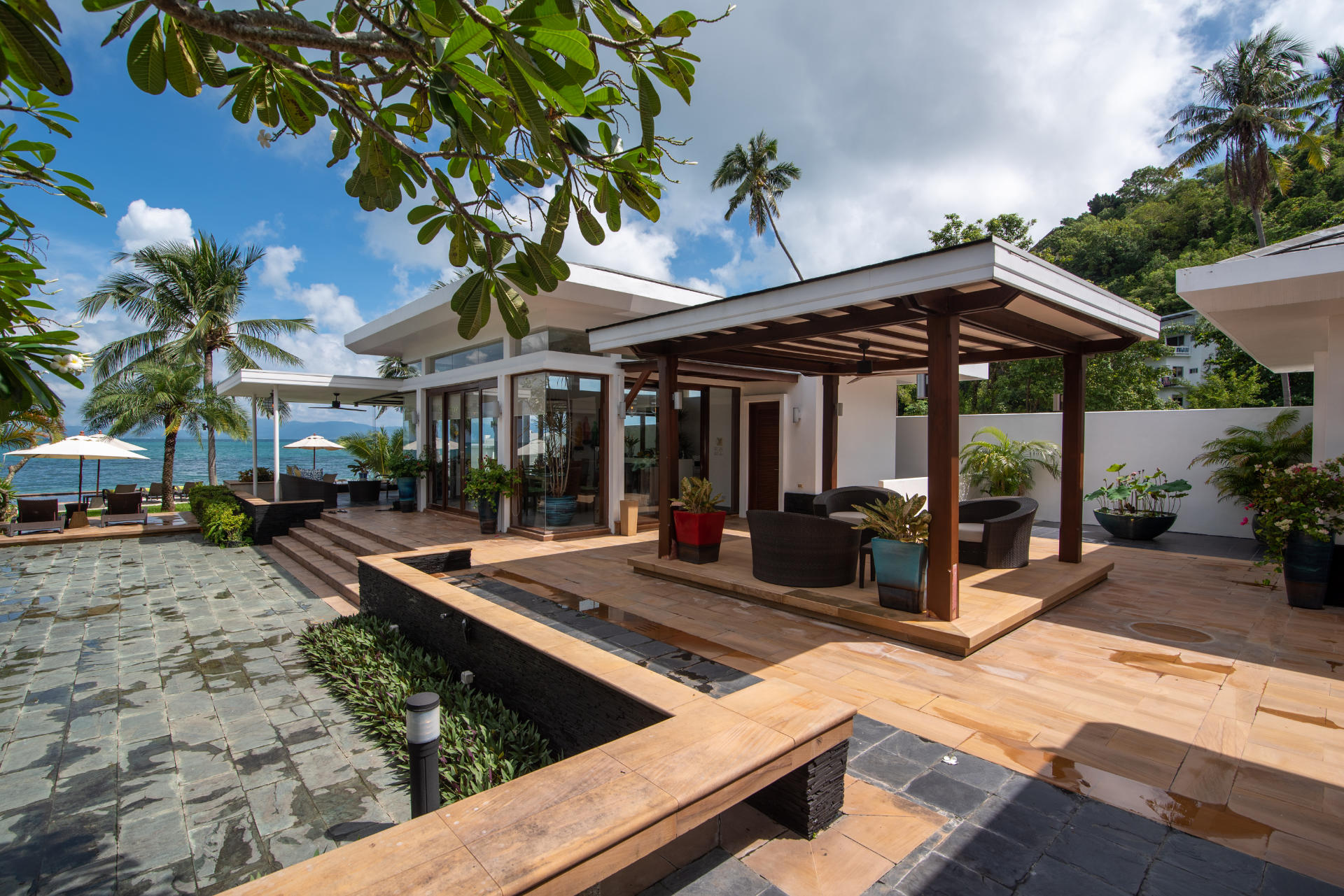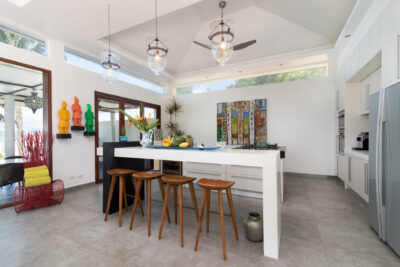 - Villa Features: 1 paddle board , 60-inch TV , BBQ grill , Beachfront Pool , Board games , Bose sound system , Foosball table , Game Room , Indoor and outdoor dining options , Kayaks and paddleboards , Living Area , Mahjong set , Outdoor Table Tennis , Plunge Pool , Private parking , Seaview