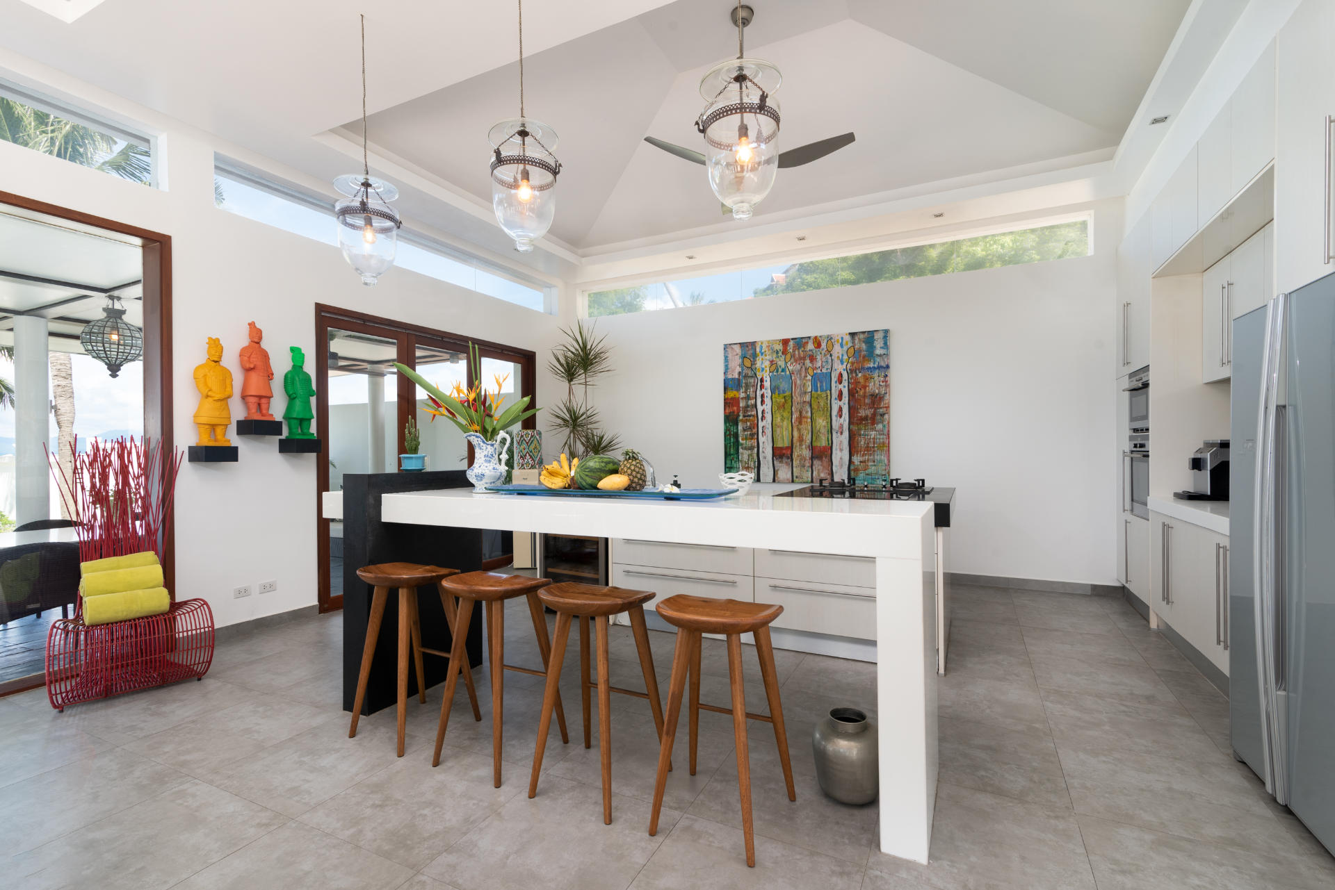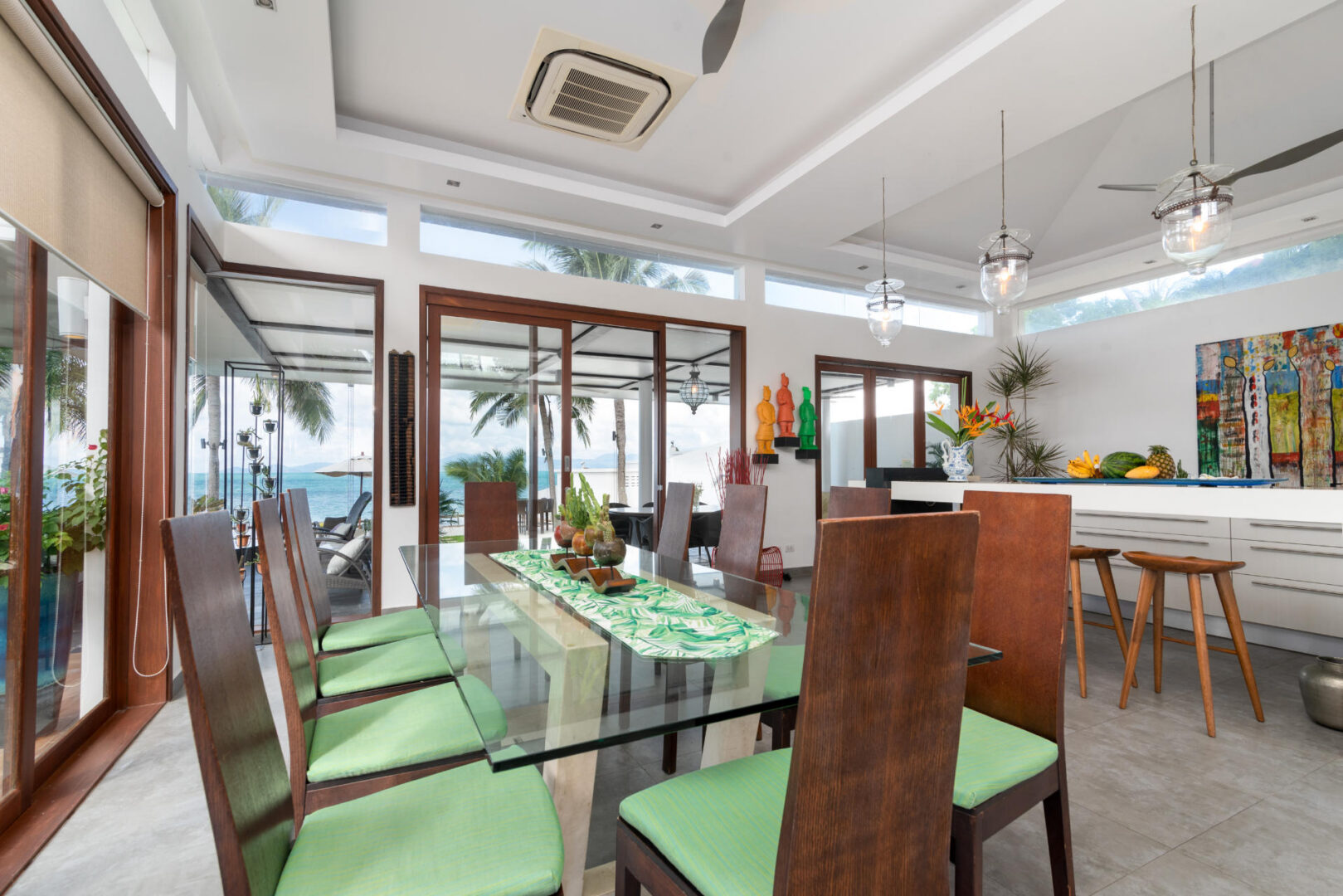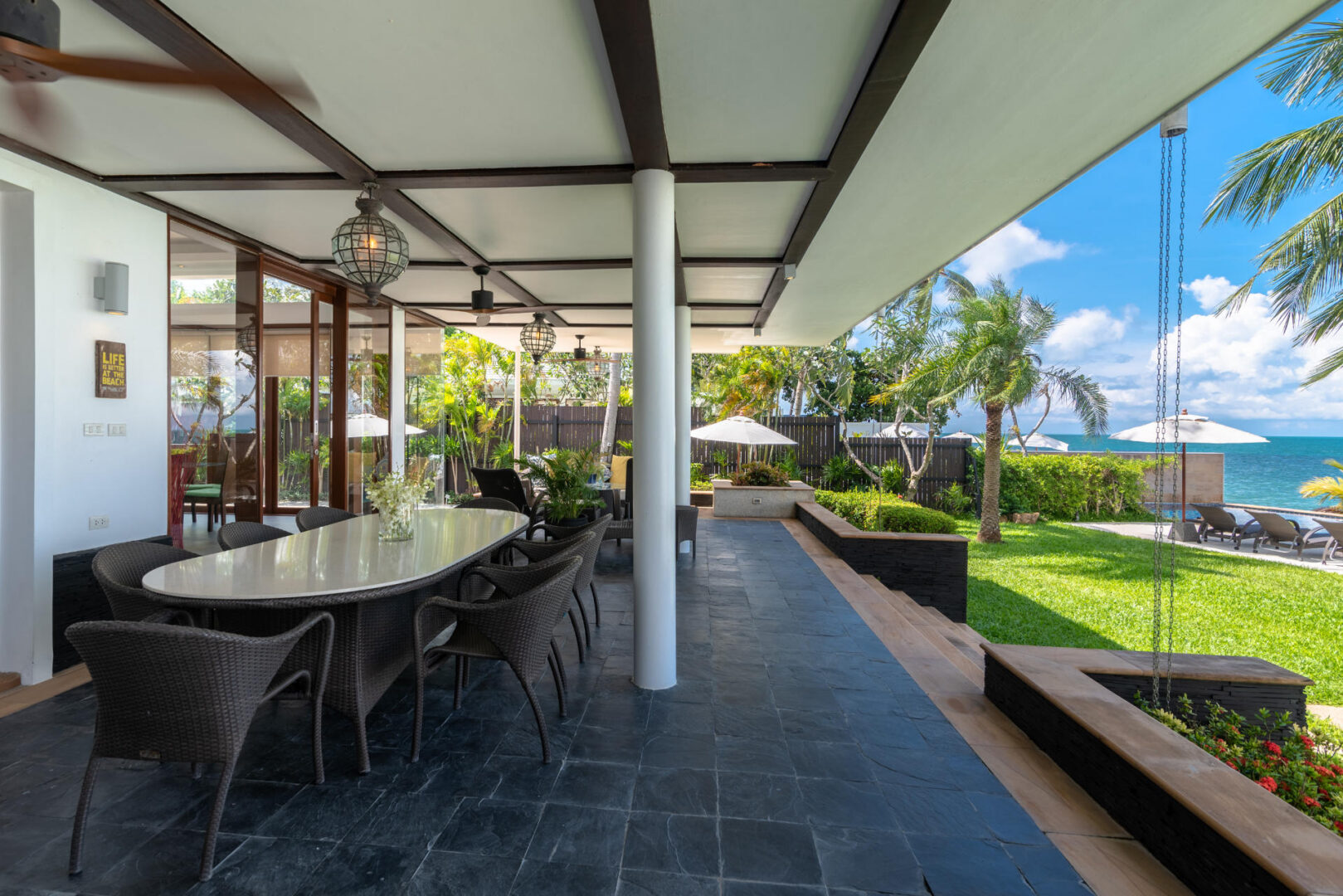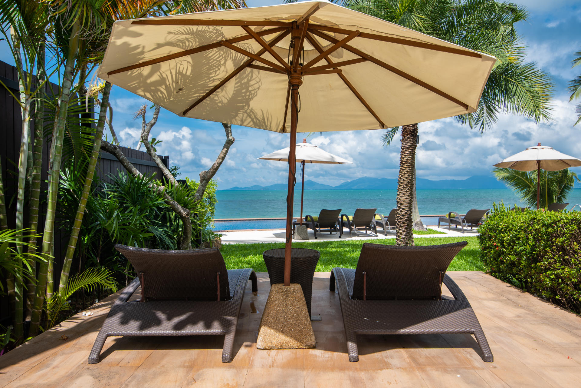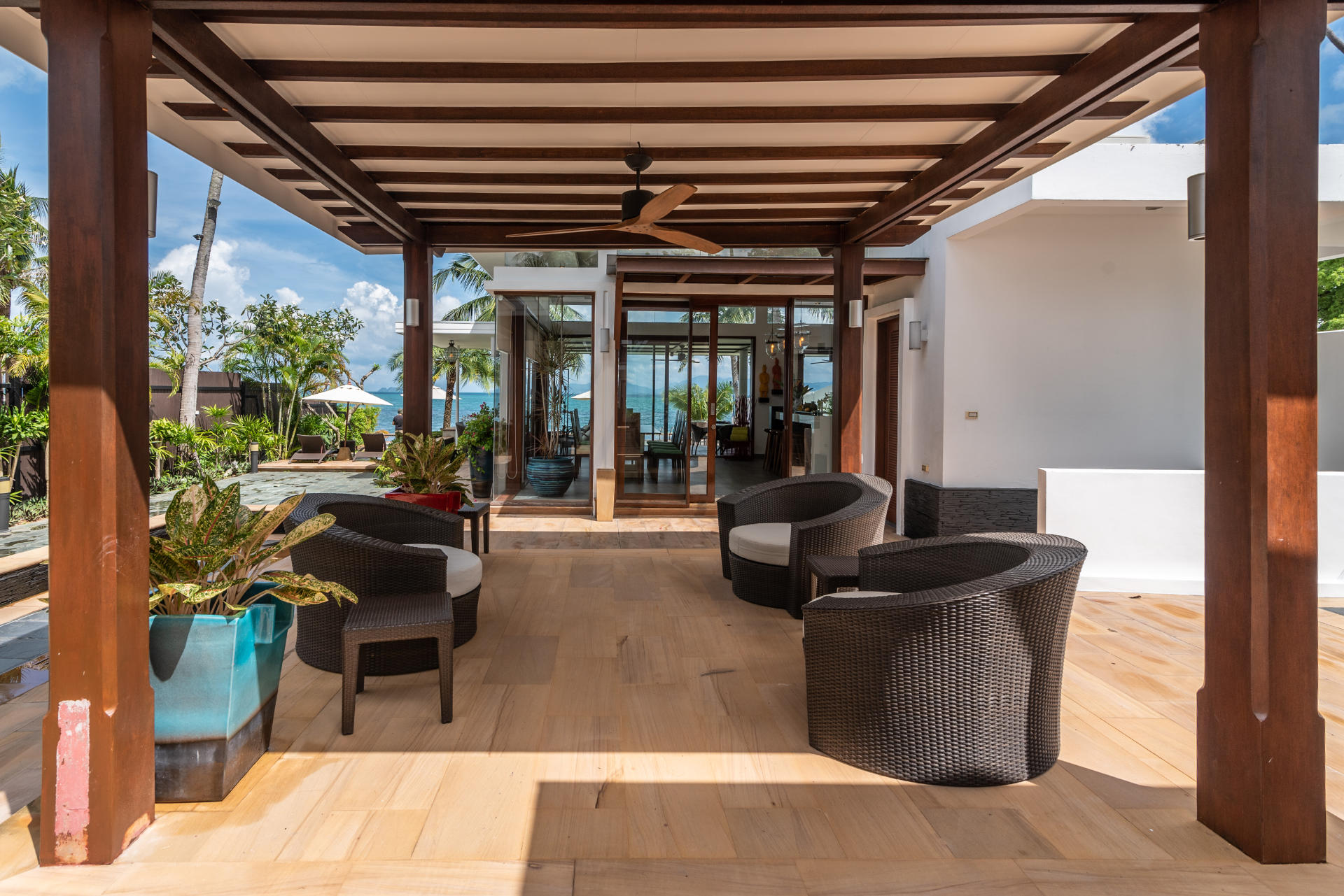 - Villa Features: 1 paddle board , 60-inch TV , BBQ grill , Beachfront Pool , Board games , Bose sound system , Foosball table , Game Room , Indoor and outdoor dining options , Kayaks and paddleboards , Living Area , Mahjong set , Outdoor Table Tennis , Plunge Pool , Private parking , Seaview