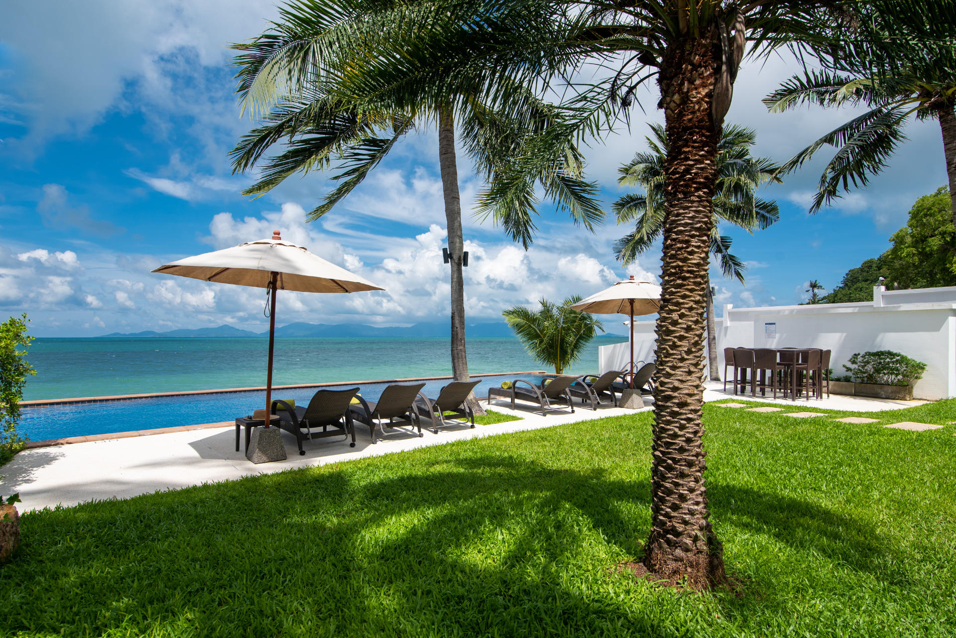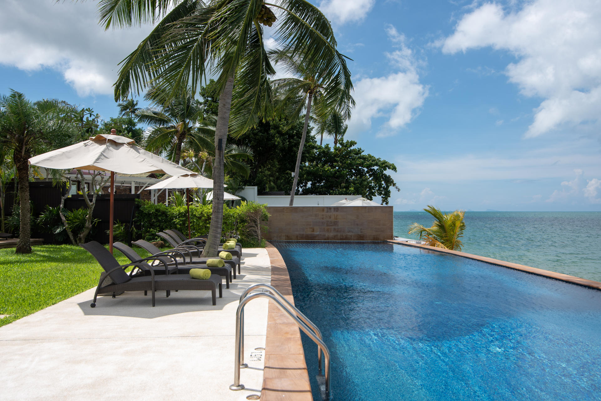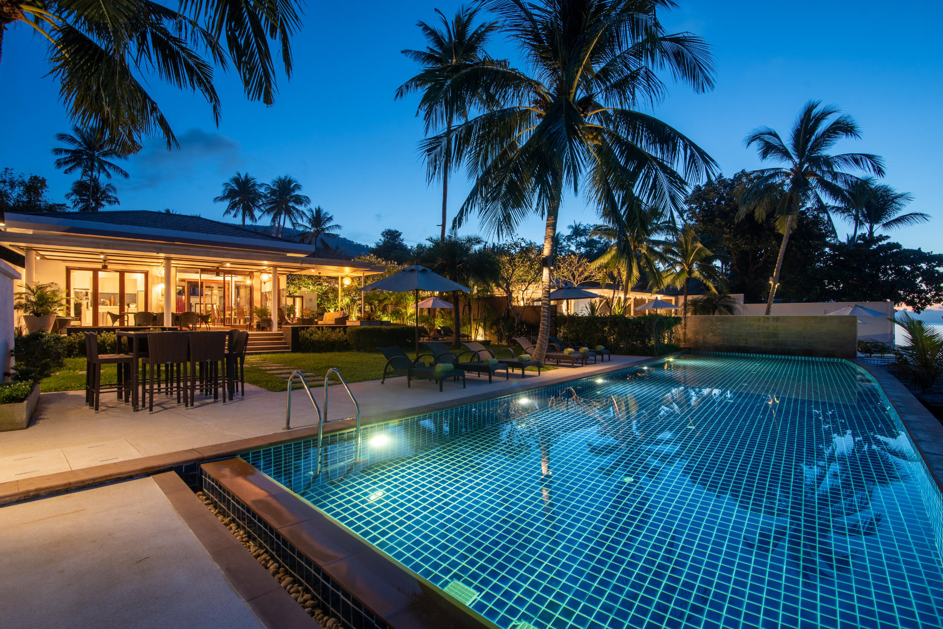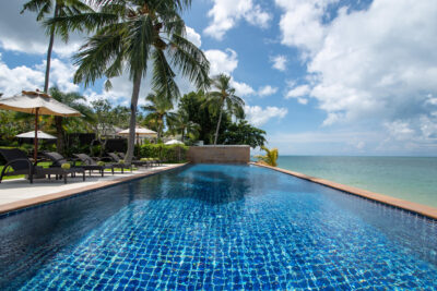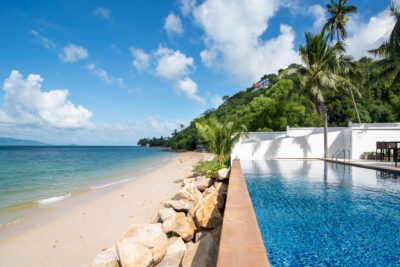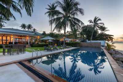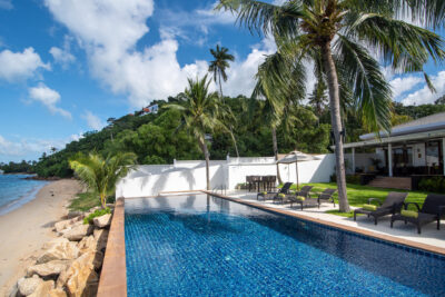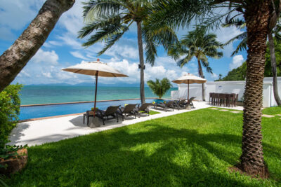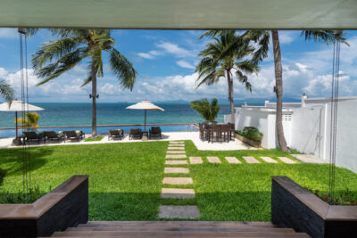 The colorfully luxurious Villa Lotus consists of five bedrooms situated on the beachfront of Koh Samui. Its gleaning and spacious interiors constructed with modern architecture and the incredible Gulf of Thailand and Koh Pha Ngan Island views provide ultimate vacation comfort and luxury.