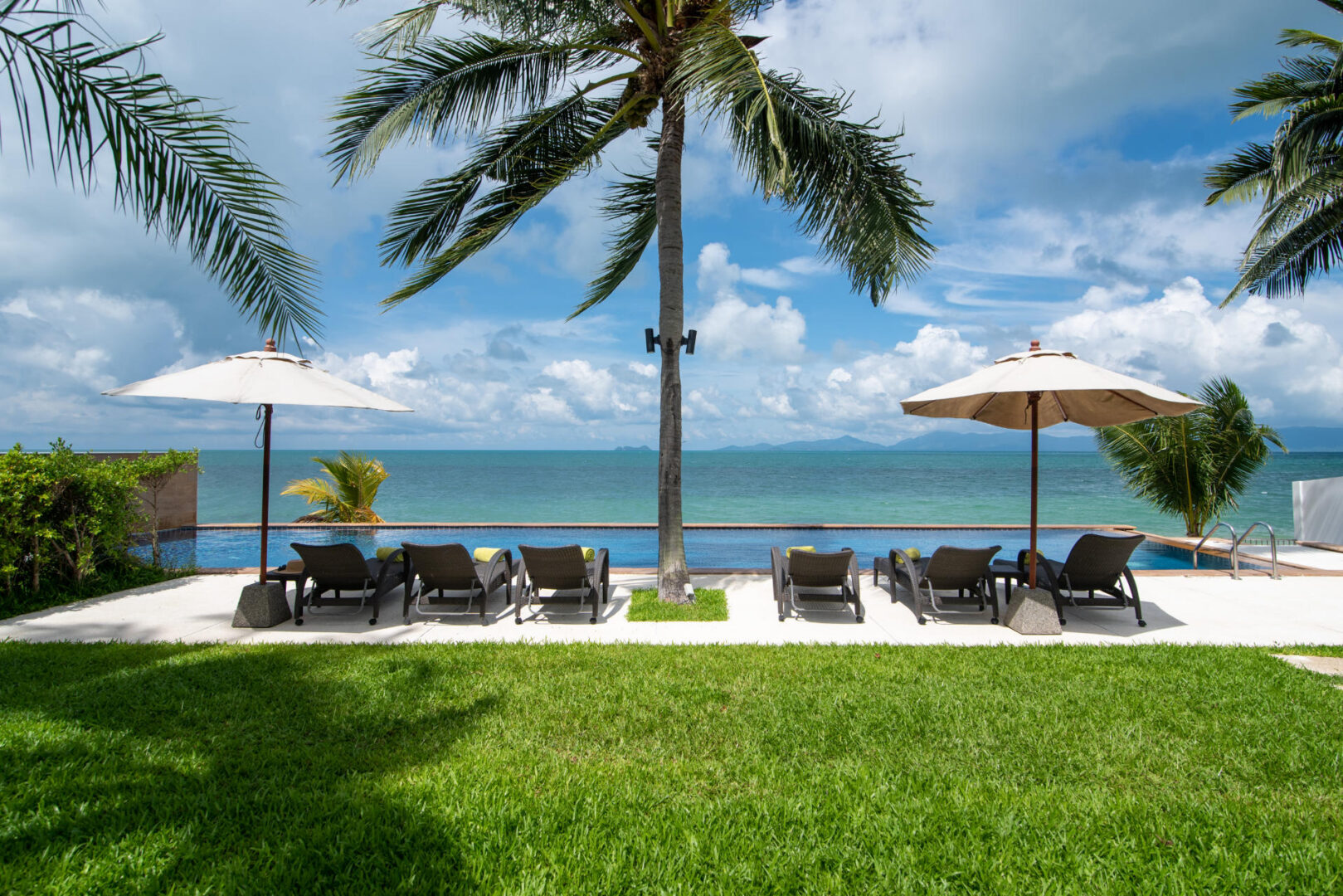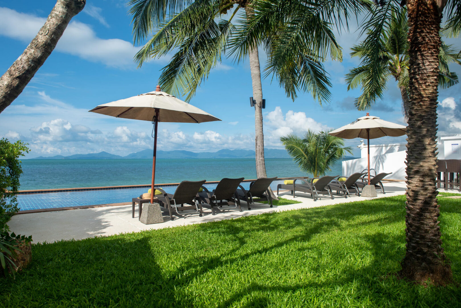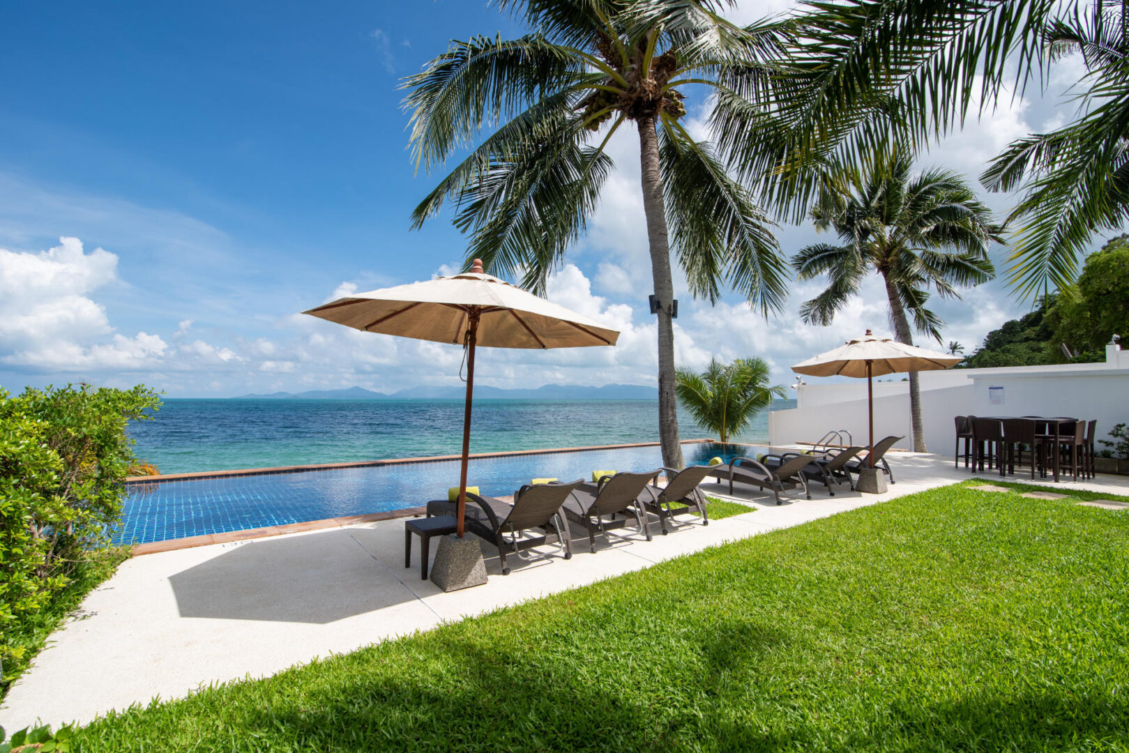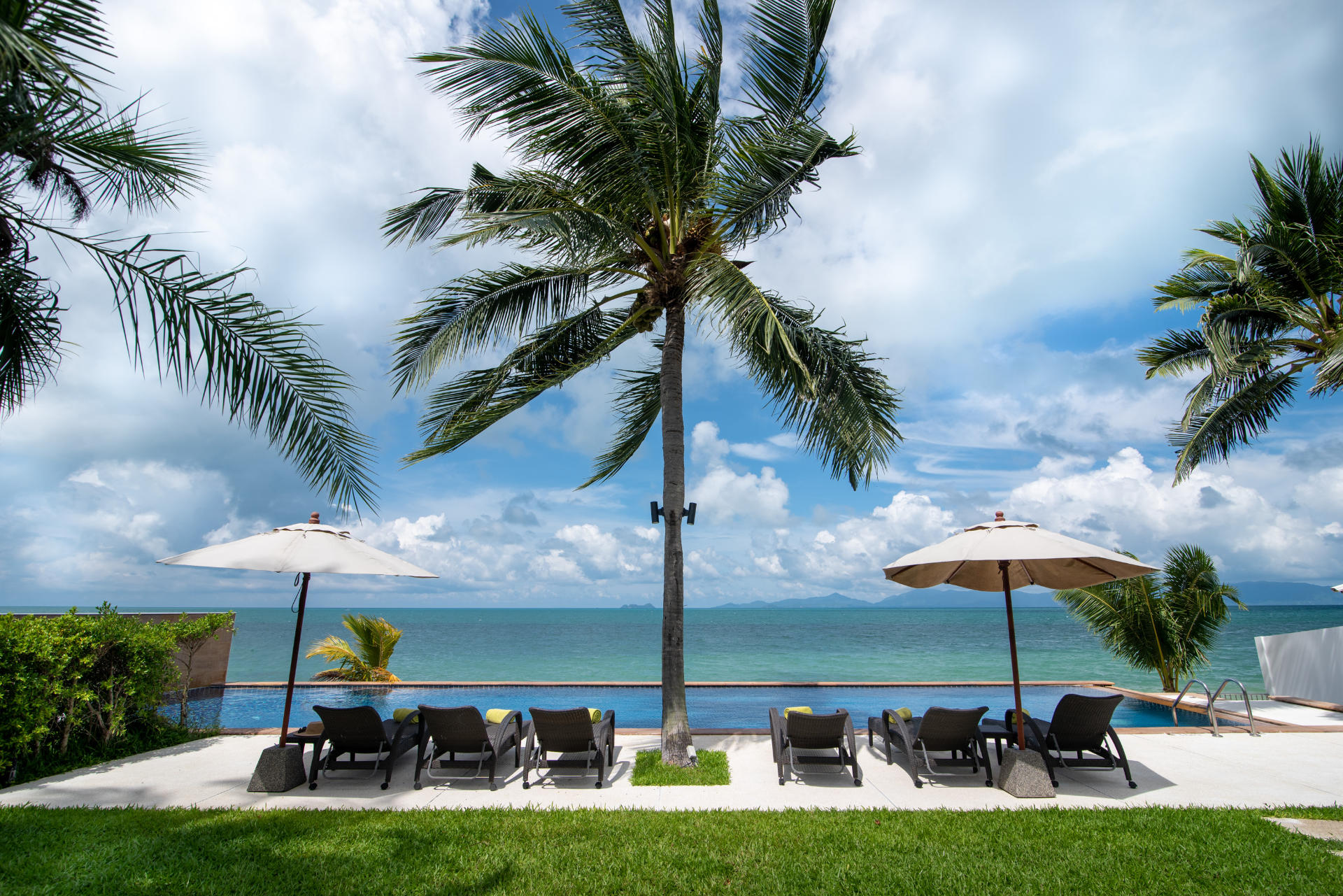 The colorfully luxurious Villa Lotus consists of five bedrooms situated on the beachfront of Koh Samui. Its gleaning and spacious interiors constructed with modern architecture and the incredible Gulf of Thailand and Koh Pha Ngan Island views provide ultimate vacation comfort and luxury.