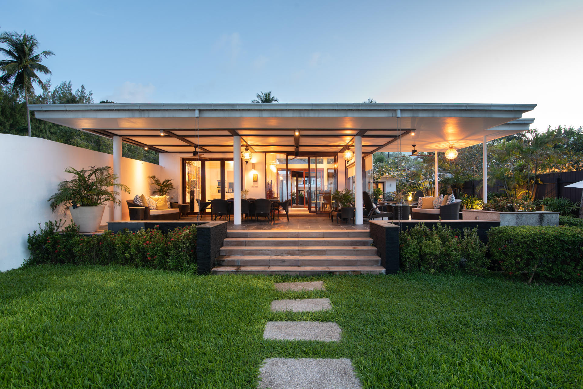 Elegant sandstone steps take you inside Villa Lotus, encompassing four air-conditioned pavilions dressed in stylish furnishings for exceptional dining, lounging, and leisure.