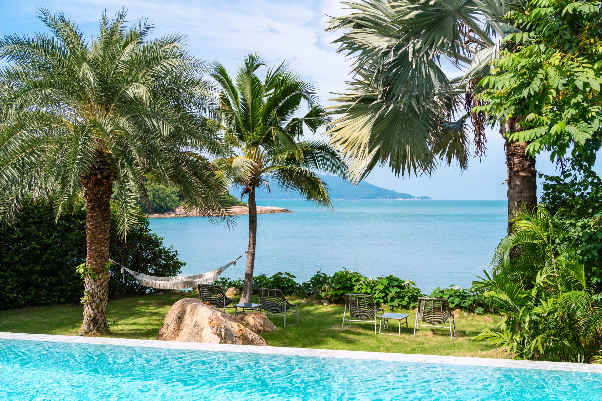 - Outdoor sala with seating by the pool