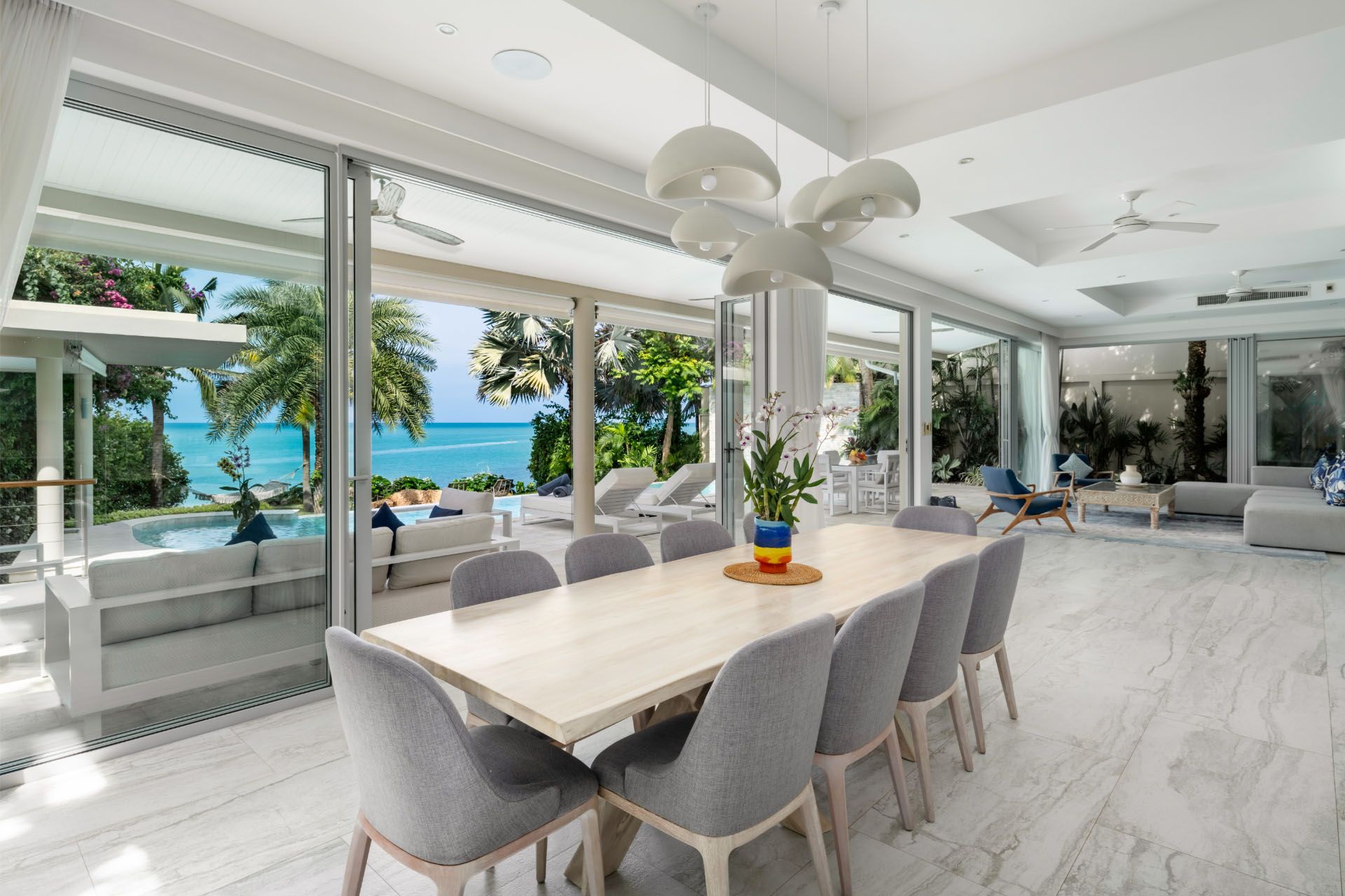 - Villa Features: 65-inch Smart TV , BBQ facilities , Beach Access , Infinity Pool , Kitchen Facilities , Media Room , Open-plan Living and Dining Area , Outdoor Sala , Seaview , Sonos sound system
