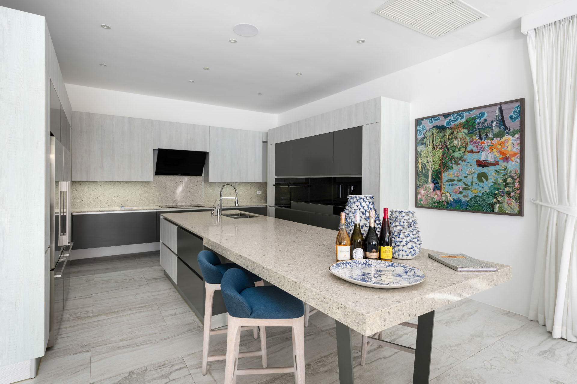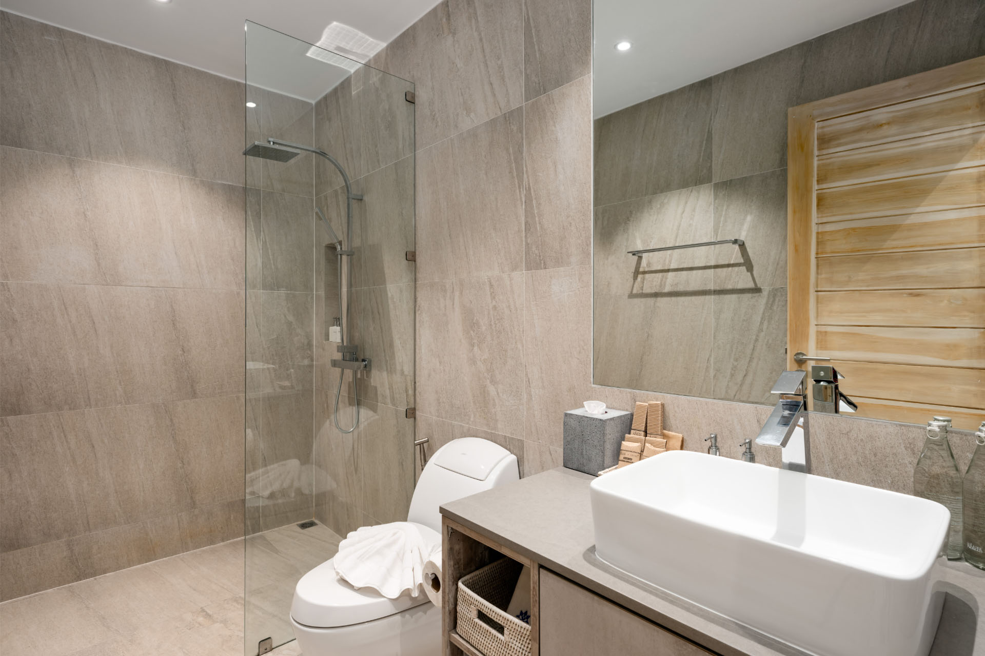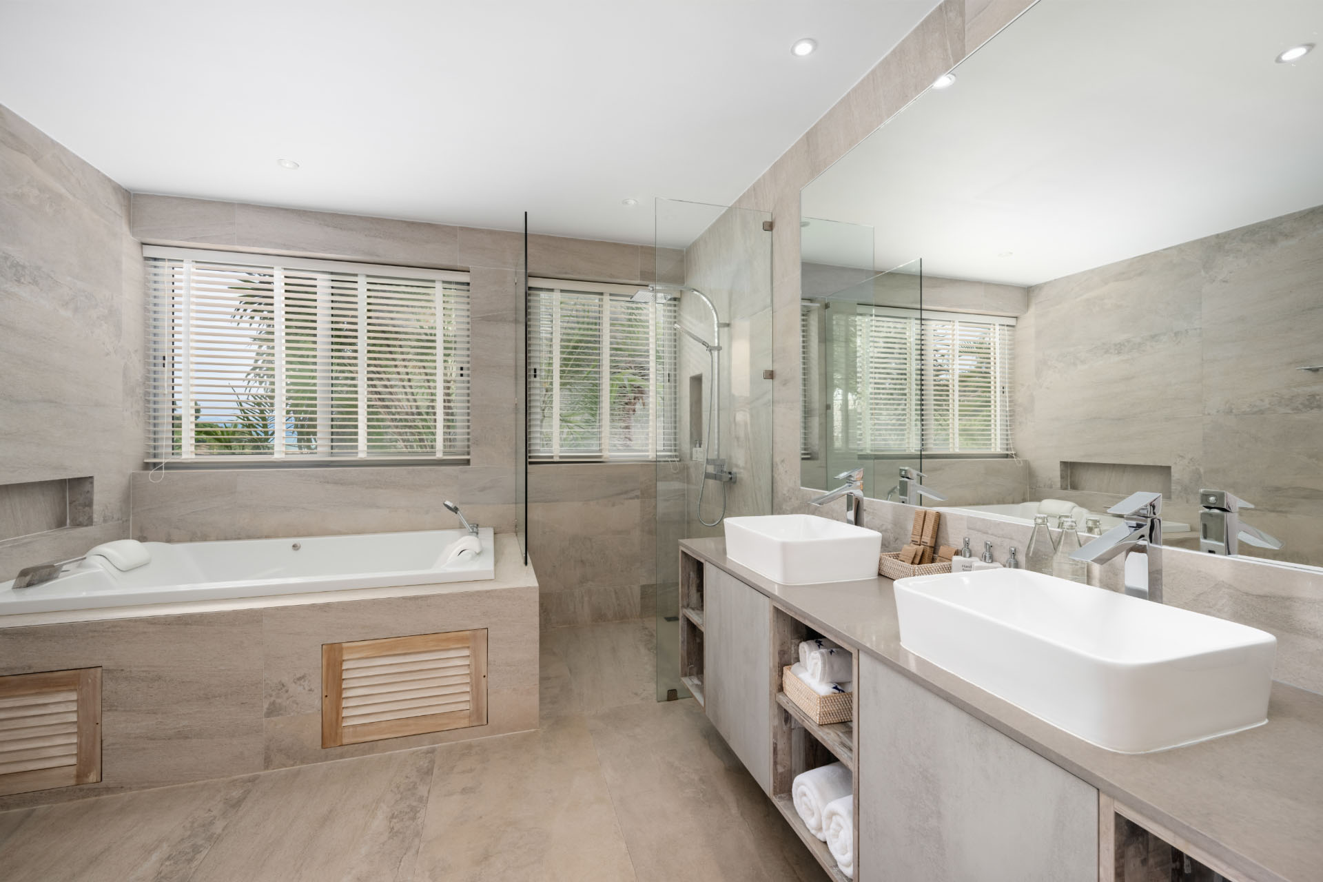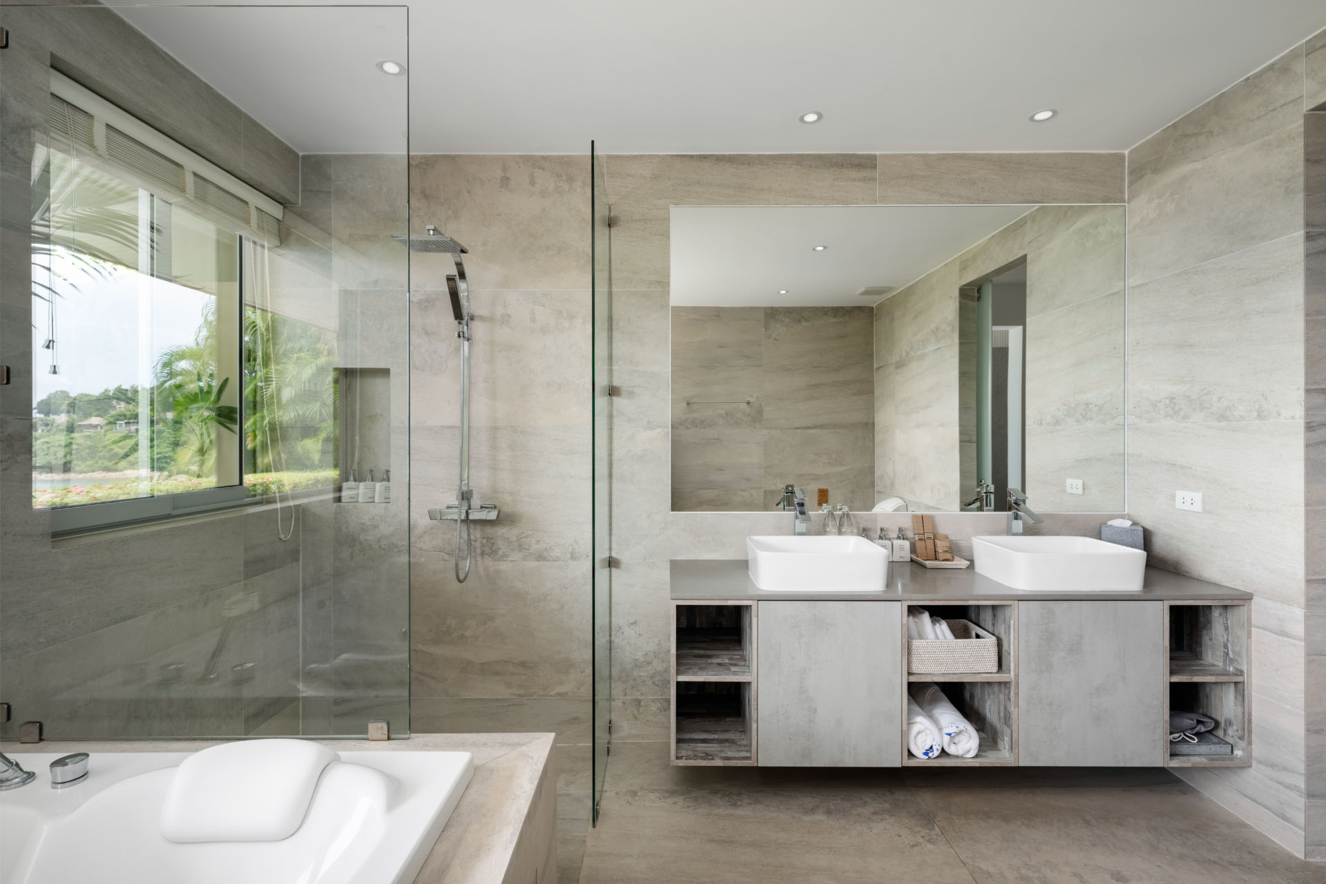 The villa’s five bedrooms, each with an ensuite bathroom, extend a soothing refuge for visitors of all ages. Four of the bedrooms feature king beds, indoor jacuzzis and bathtubs, plus a compact mini-pantry, while the dedicated family room with twin beds and a flatscreen TV gives children a comfortable space to watch their favorite films and programs in privacy.