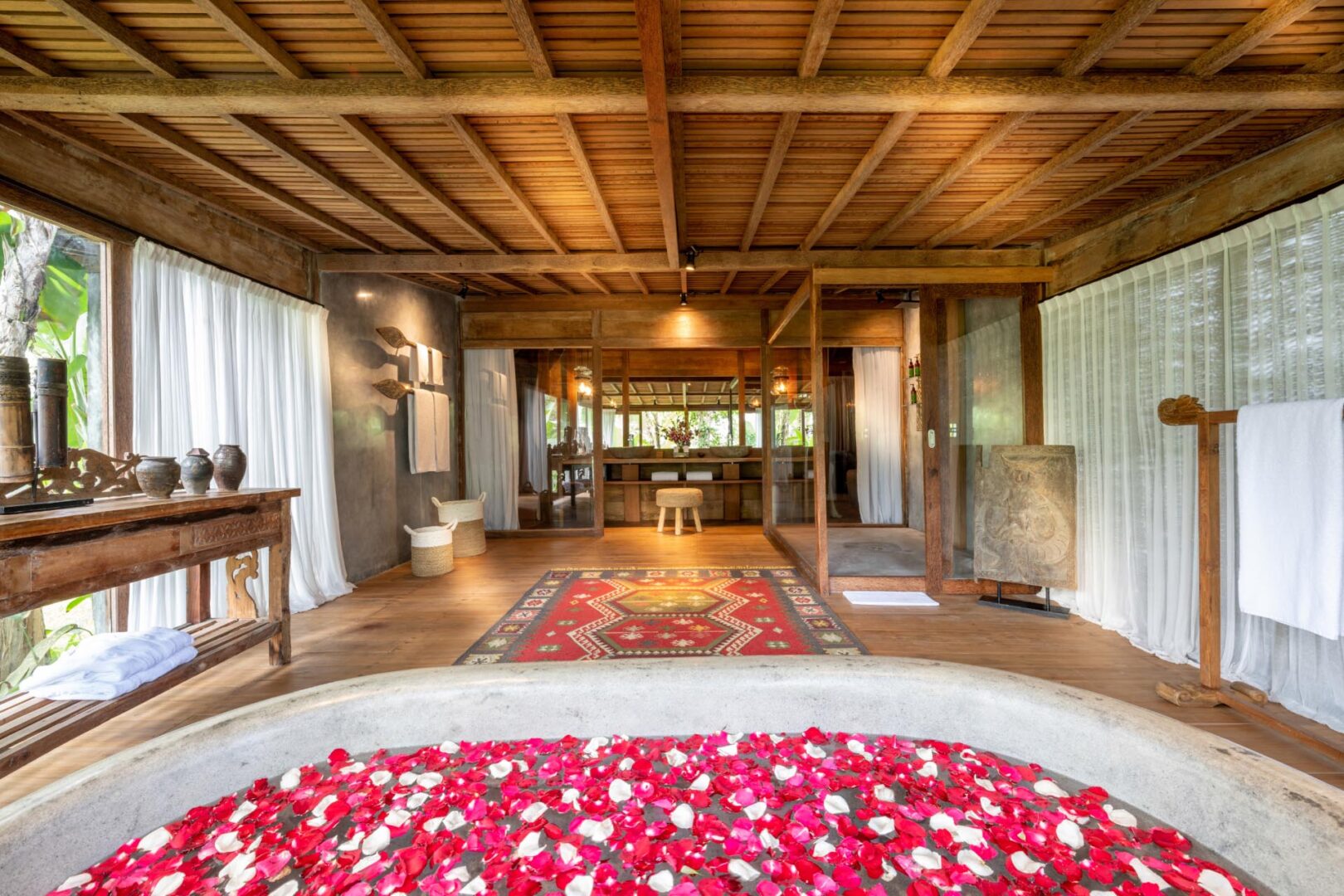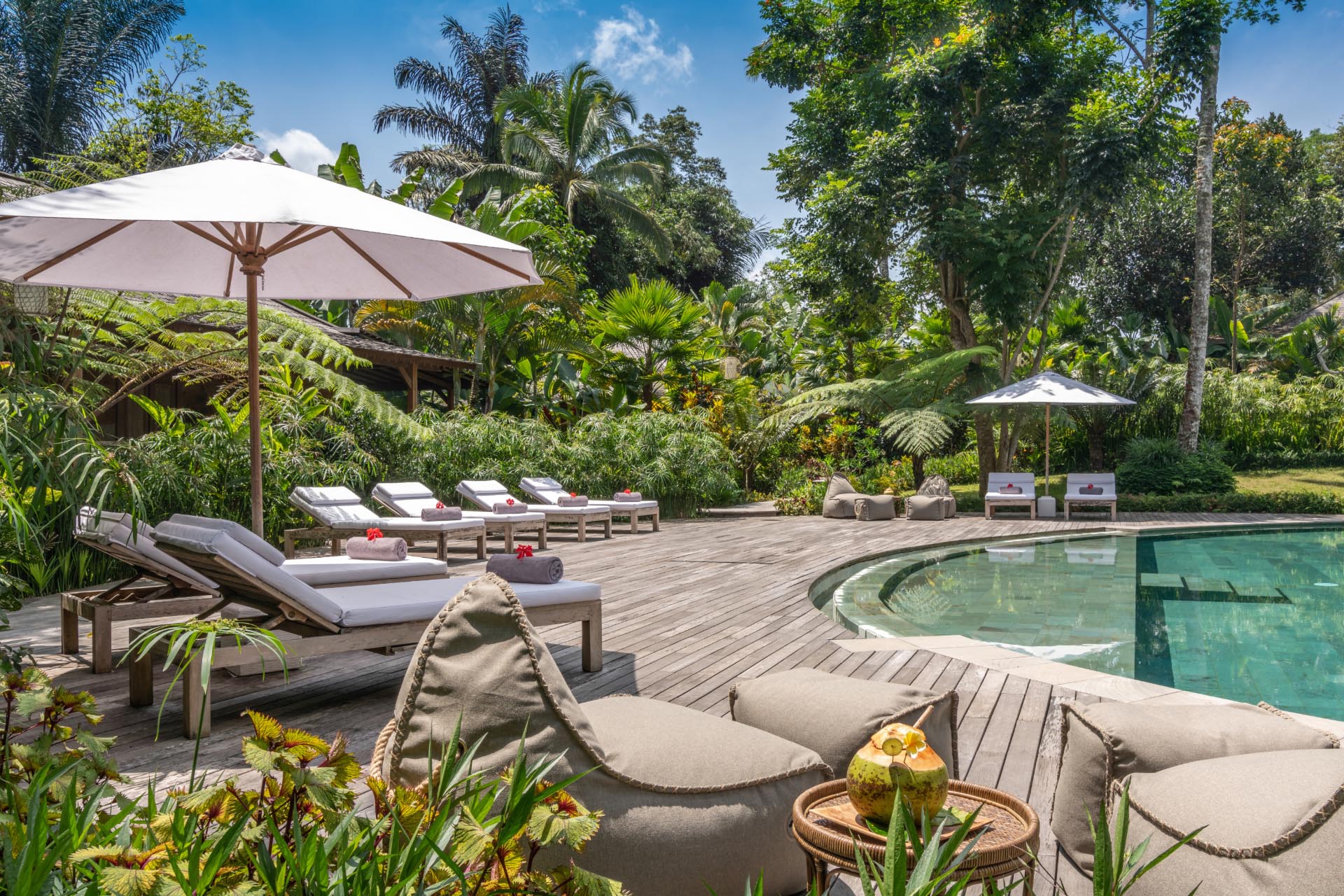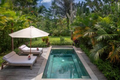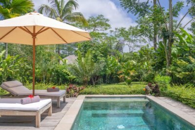 Wake to the sounds of the jungle, the gentle rustle of leaves, and the delicate scent of tropical flowers in the morning air. Spend your days lounging by the pool surrounded by lush greenery, or set out to explore the vibrant culture and breathtaking landscapes of Bali, knowing you’ll return to a haven of peace and luxury.