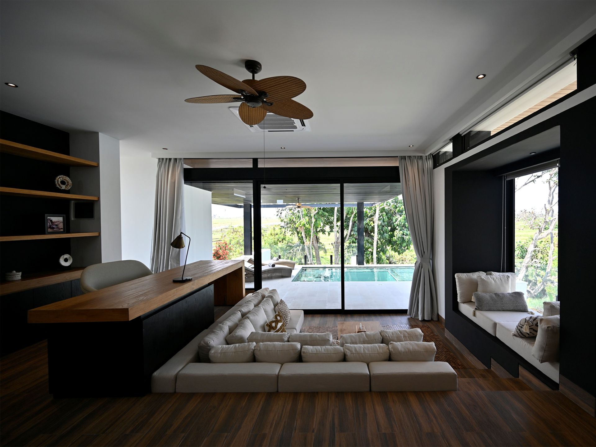 - Villa Features: 25-meter infinity pool , 80-inch smart TV with Sonos sound bar , Dining with 12 Seaters , Living Area , Sunken pool lounge with swim-up bar and alfresco kitchen , TV room
