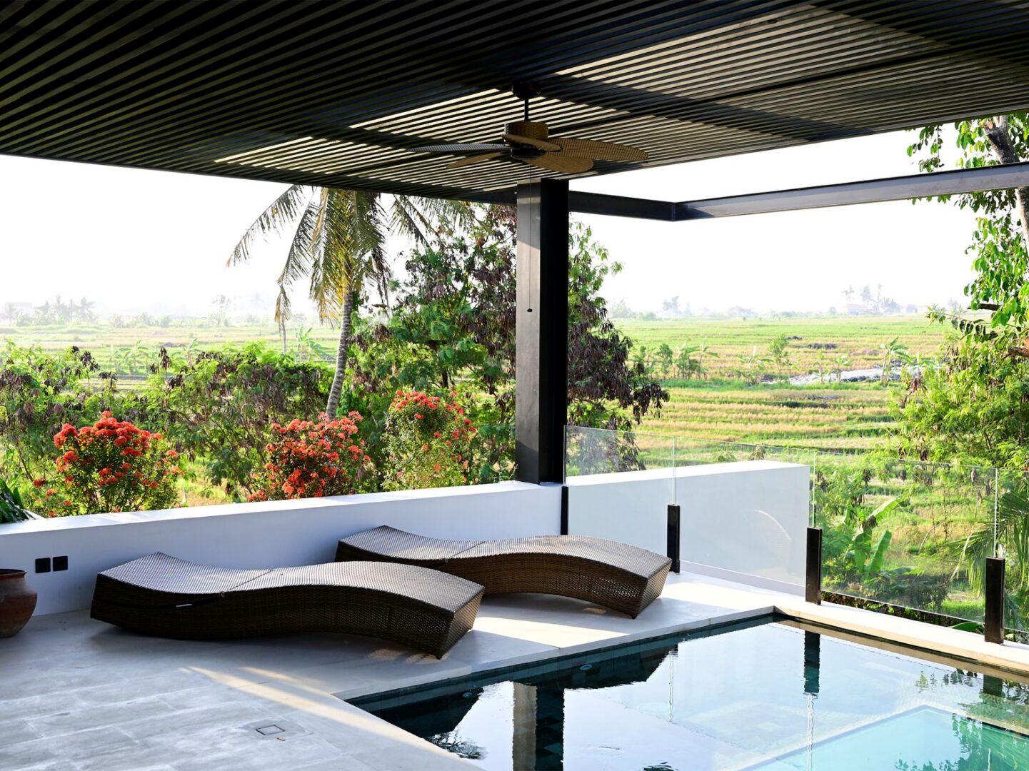 Product Description: Villa Nica is a stunning blend of contemporary tropical architecture, refined interiors, and curated art. This six-bedroom masterpiece spans two wings, seamlessly integrating indoor and outdoor spaces to showcase panoramic rice field views.