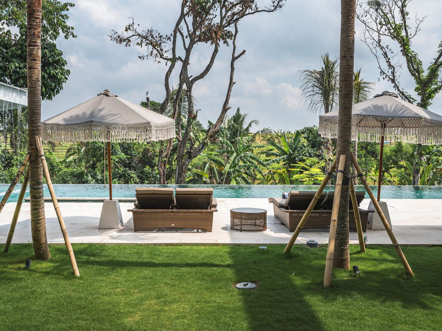 - Pool deck with double sunbeds