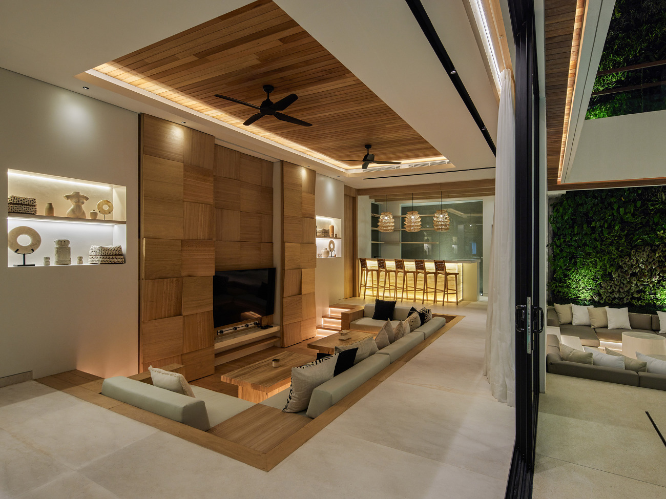 - Sunken indoor living room with flat-screen TV
