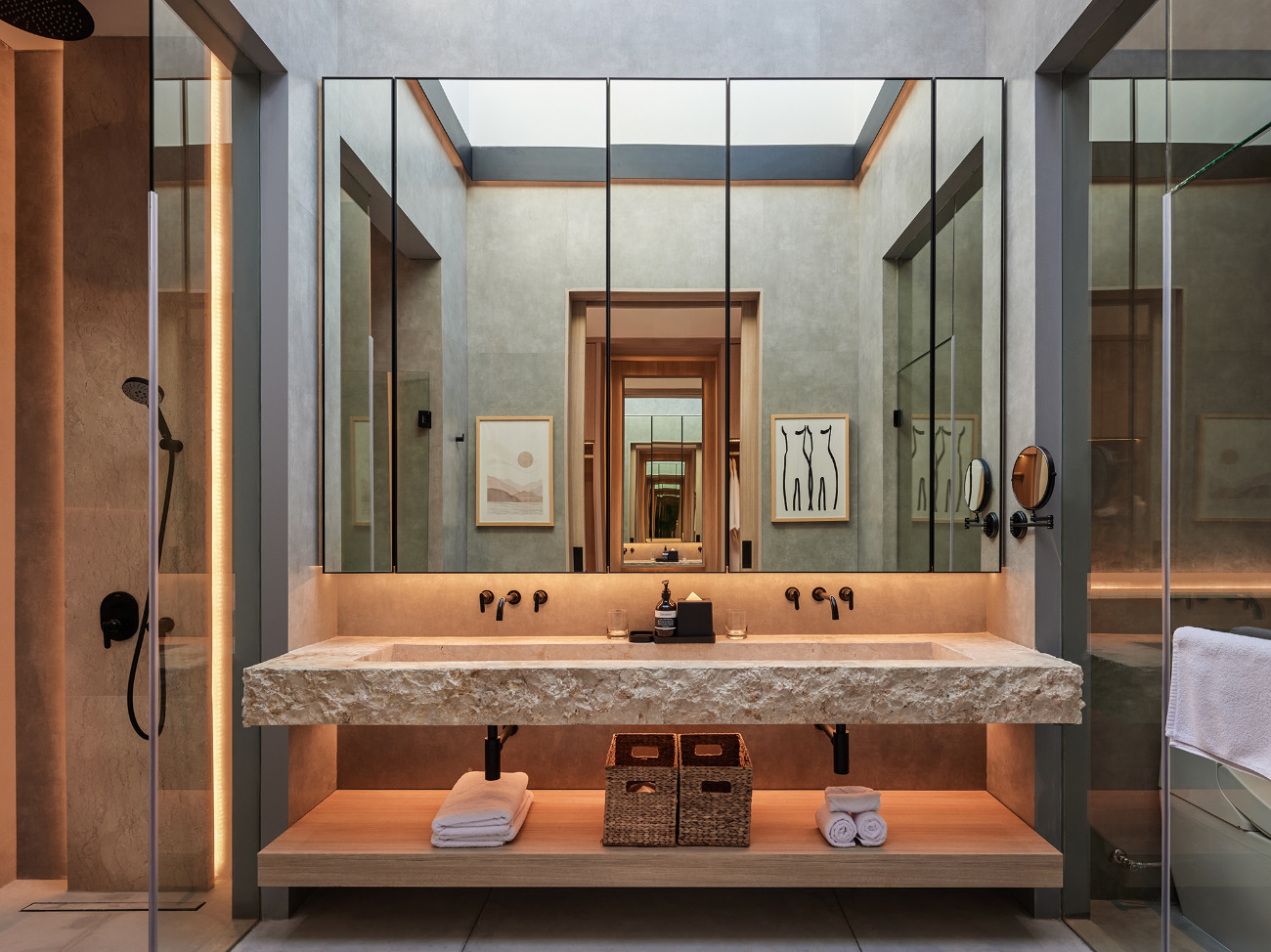 Junior Suite: King-sized bed; Study desk; Flat-screen TV; Air conditioning; Ensuite bathroom with rainshower, skylight, stone double vanities, toilet; Toiletries; Bathrobes; Hairdryer; Towels; Slippers