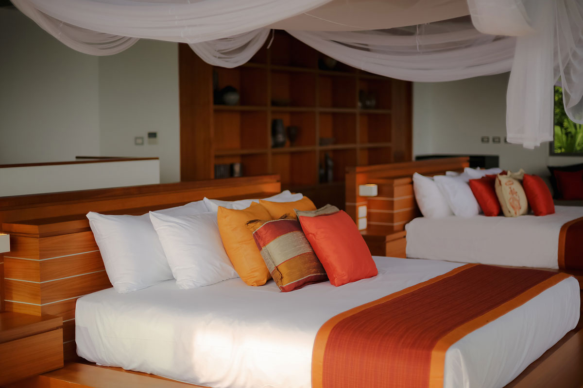 Paa Talee is a private villa catering to the needs of a diverse number of holidaymakers; from couples to medium-sized and large-sized holiday parties. Paa Talee has a selection of five, seven, and nine bedrooms villa selections based on the requirements of the holidaymakers. Of these, eight bedrooms are en-suite, fitted with king-size beds, while one en-suite bedroom has two king-size beds, and two of the bedrooms have sofa beds. This makes it possible to have more than twenty guests at your party, though additional charges apply.