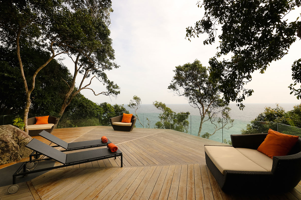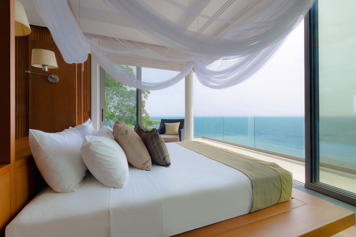 Nestled in a rocky enclave overlooking the Andaman Sea and just 32 km from Phuket International Airport is Villa Paa Talee. As part of the outstanding Cape Amarin private estate, it boasts a position next to luxury villas and high-end resorts situated along the Millionaires’ Mile’s coastal stretch. Its quiet locale is emphasized by the palm fronds and frangipani that sway to the ocean breeze, stilling the mind and bringing peace. This luxury villa has much to offer as seen.