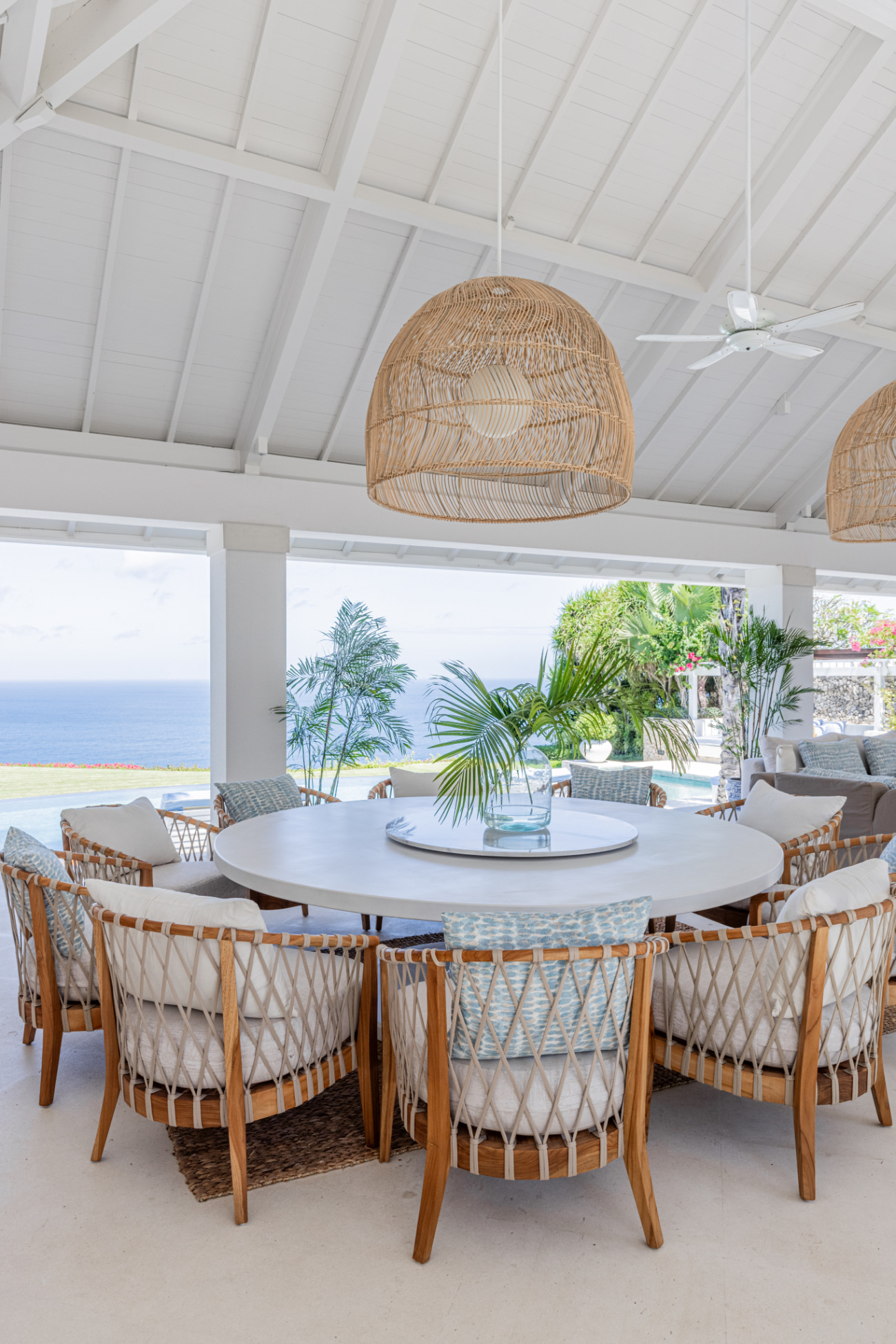 - Grand Pavilion living and dining area with ocean view, bar, and wood-fire oven