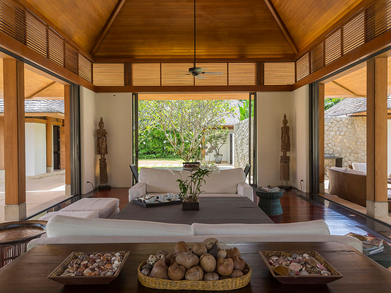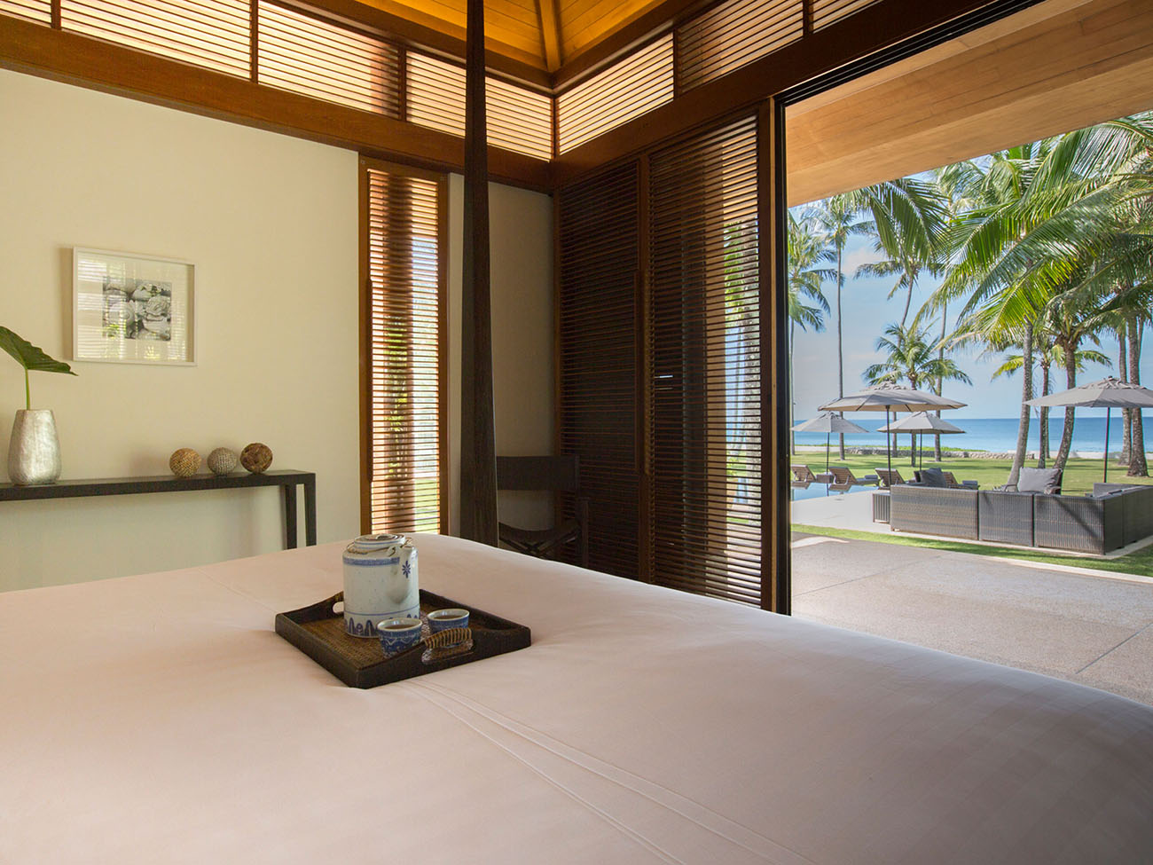 There are a total of 6 bedrooms, composed of 2 master suites and 4 guest suites. Contemporary with a touch of Thai influences on the architecture and interiors, clean lines, neutral colors, and floor-to-ceiling windows provide a calming and relaxing ambiance.