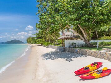 Perched on Koh Samui’s serene south coast, Villa Thansamaay is a modern beachfront haven with seven stylish double bedrooms and stunning sea views. Ideal for family vacations or groups of up to 14, this low-rise villa in Laem Sor offers a private retreat amid coconut plantations.