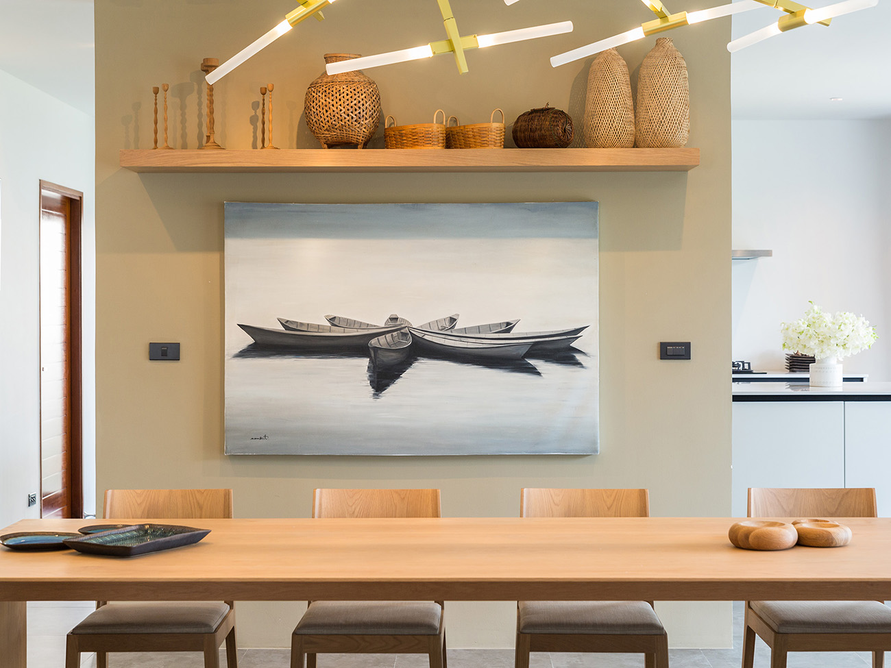 Designed with cool grey floors, rustic rugs, and muted tones, the villa exudes comfort with Asian-inspired art that adds a splash of color. Fully staffed with a villa manager and private chef, the villa ensures a smooth and enjoyable experience, from menu planning to excursions, for a truly relaxing holiday.