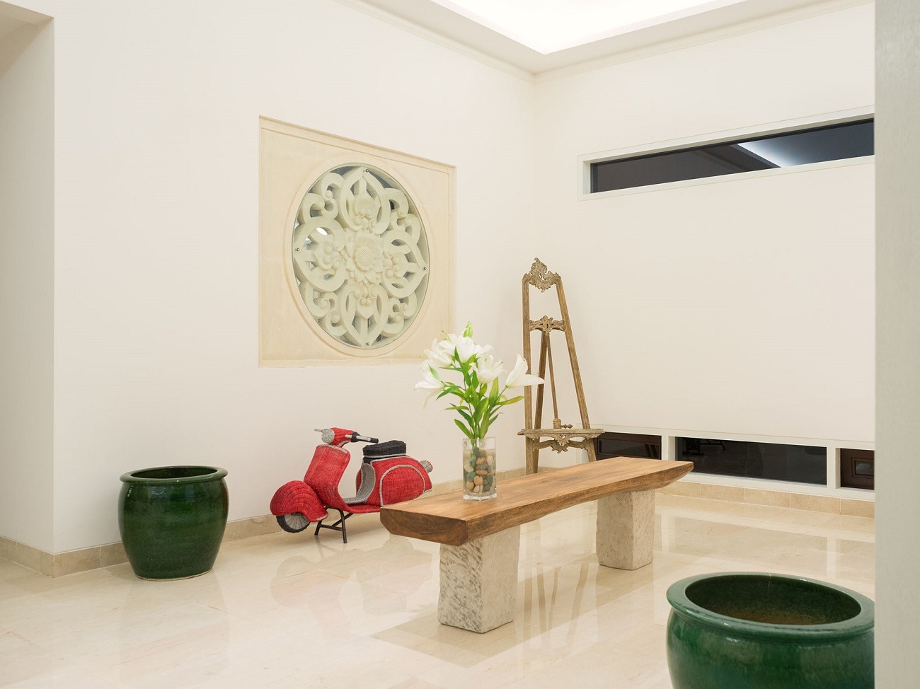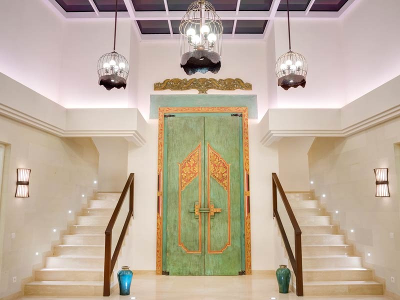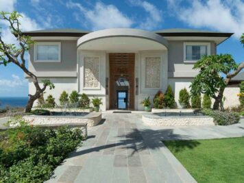 Even before you step through its impressive entrance, Villa The Pala, located in Bali’s exclusive Pandawa Cliff Estate, exudes an unmatched atmosphere. The double-height entrance radiates splendor with its elaborately carved gold, red, and sea-green painted wood, along with stone frescoes that portray the fragrant frangipani.