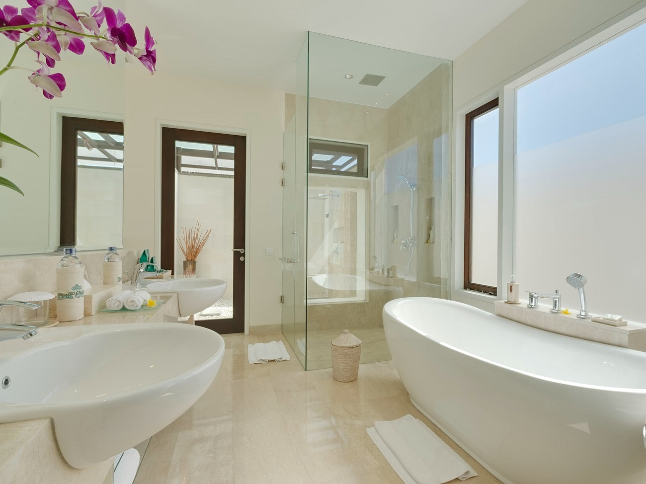 Guest Bedroom 2, 3, 4, & 5 – Two suites with king-size beds, the other two with split-king beds, and the lower-floor suite with twin-size bed (convertible to king); Top of the range audio-visual equipment; Marble floors; Sofas or daybeds; Writing desks; Bar fridges; Ensuite bathrooms fitted with twin vanities (with indoor and outdoor showers at the lower suite), freestanding tubs and glass-fronted shower cubicles; Dressing areas
