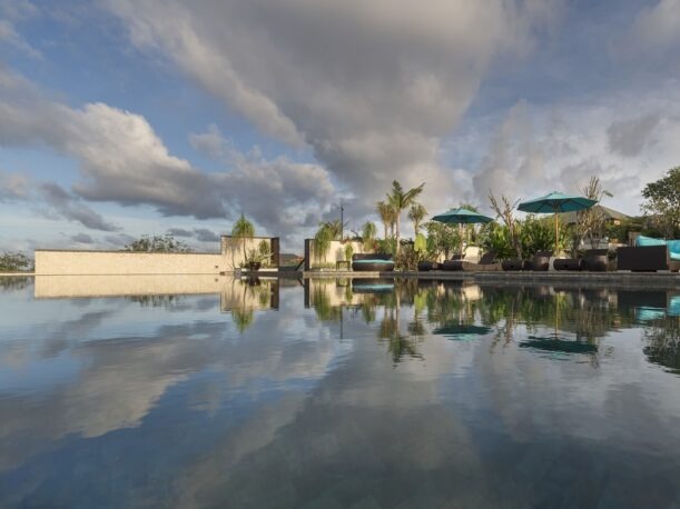 Below the estate features Pandawa Beach, stretching out its pristine white sands, flanked by quaint beach huts and local cafes. The beach derives its name from the five warrior brothers of the Mahabharata epic, immortalized in white stone statues along the road leading to the shore.