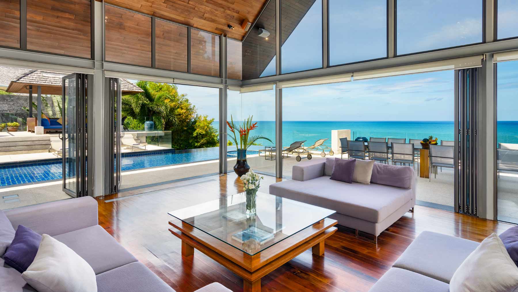 An entire ocean-facing wall of floor-to-ceiling glass floods the interiors with natural light and offers uninterrupted views of the Andaman Sea. Whether you’re lounging in the elegant living room, enjoying a sumptuous Thai feast in the sophisticated dining area, or relaxing in the media room with its home theater system, Villa Viman ensures that every moment is framed by the beauty of its surroundings.