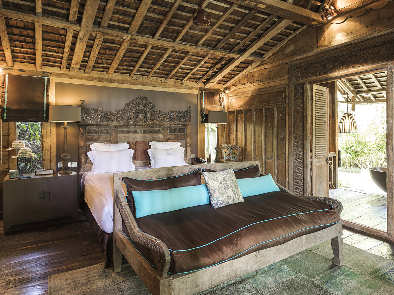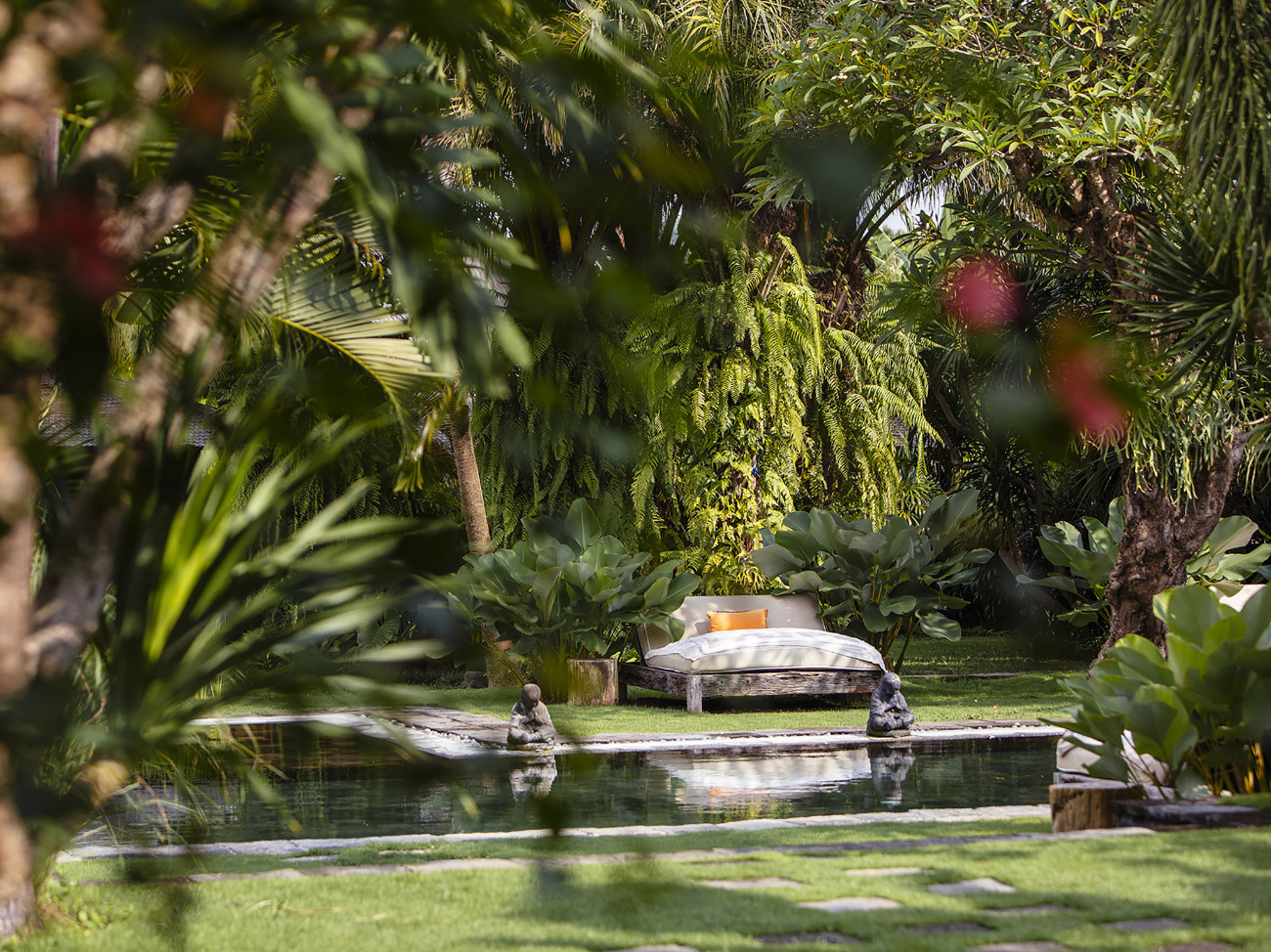 With its beautiful architecture and design, the five-bedroom villa is sure to please guests who are looking for a larger-than-life experience. The enchanting gardens, 20 meters swimming pool and grand open-sided pavilions guarantee a peaceful stay among natural beauty. Daybeds and sunbeds are provided for guests’ need to chill out by the pool.