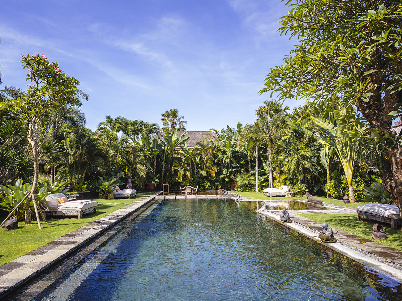 Canggu’s Villa Zelie can be found at the heart of Bali’s beach scene. Surrounded by paradisiac verdant landscapes, it is down a quiet residential street that links the city to the beach. Private and calm, the setting allows for a retreat inside a luxurious villa as well as the possibility of spending time at the many restaurant and cafés of Canggu and Seminyak. High-end shopping, traditional as well as modern shops and boutiques are just a few kilometers away but never close enough to disturb the unique ambiance of the estate and its guests.